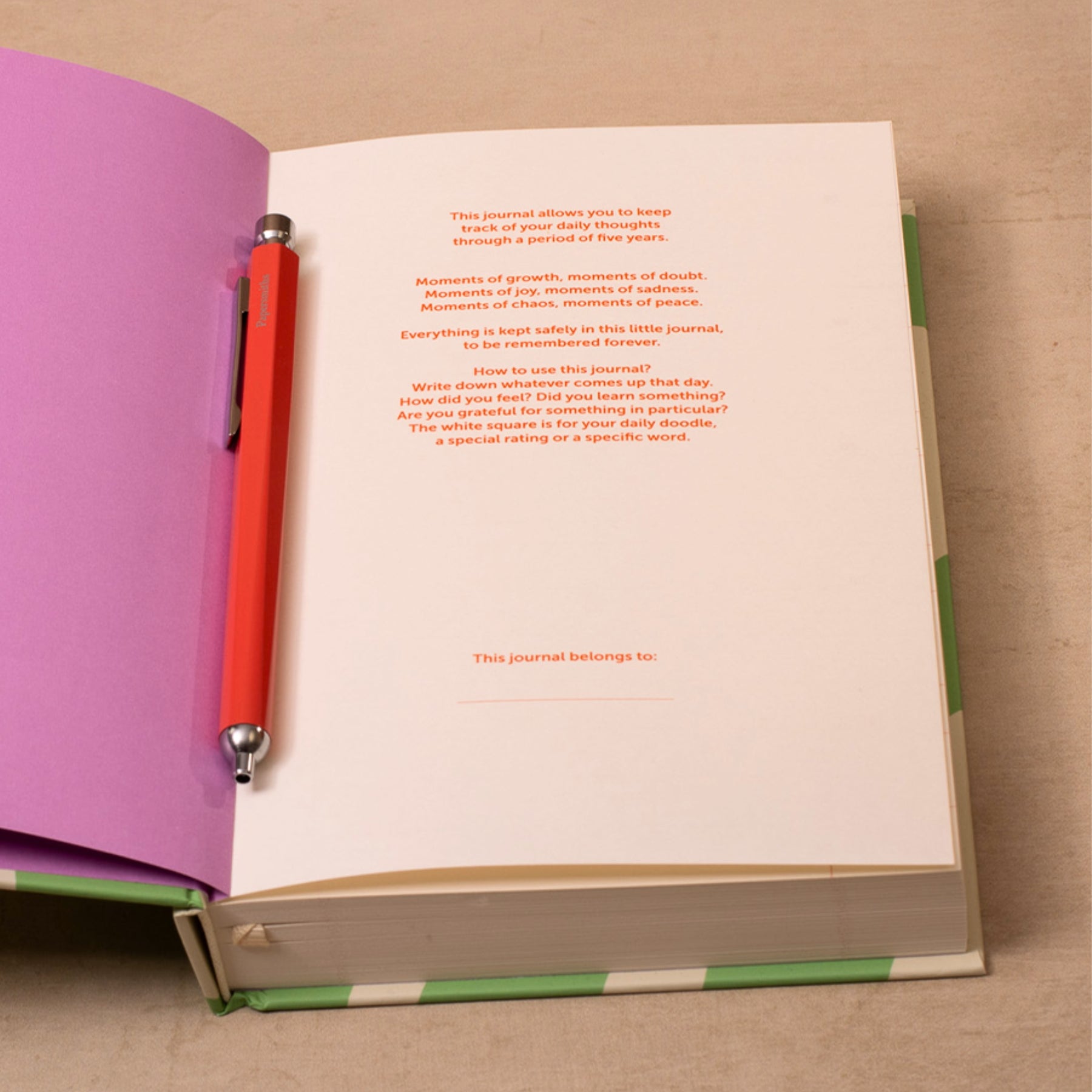The One Line a Day journal transcends ordinary journaling, serving as a timeless vessel for nostalgia. Each page offers five ruled lines for five years, preserving your innermost thoughts and experiences for generations to cherish.