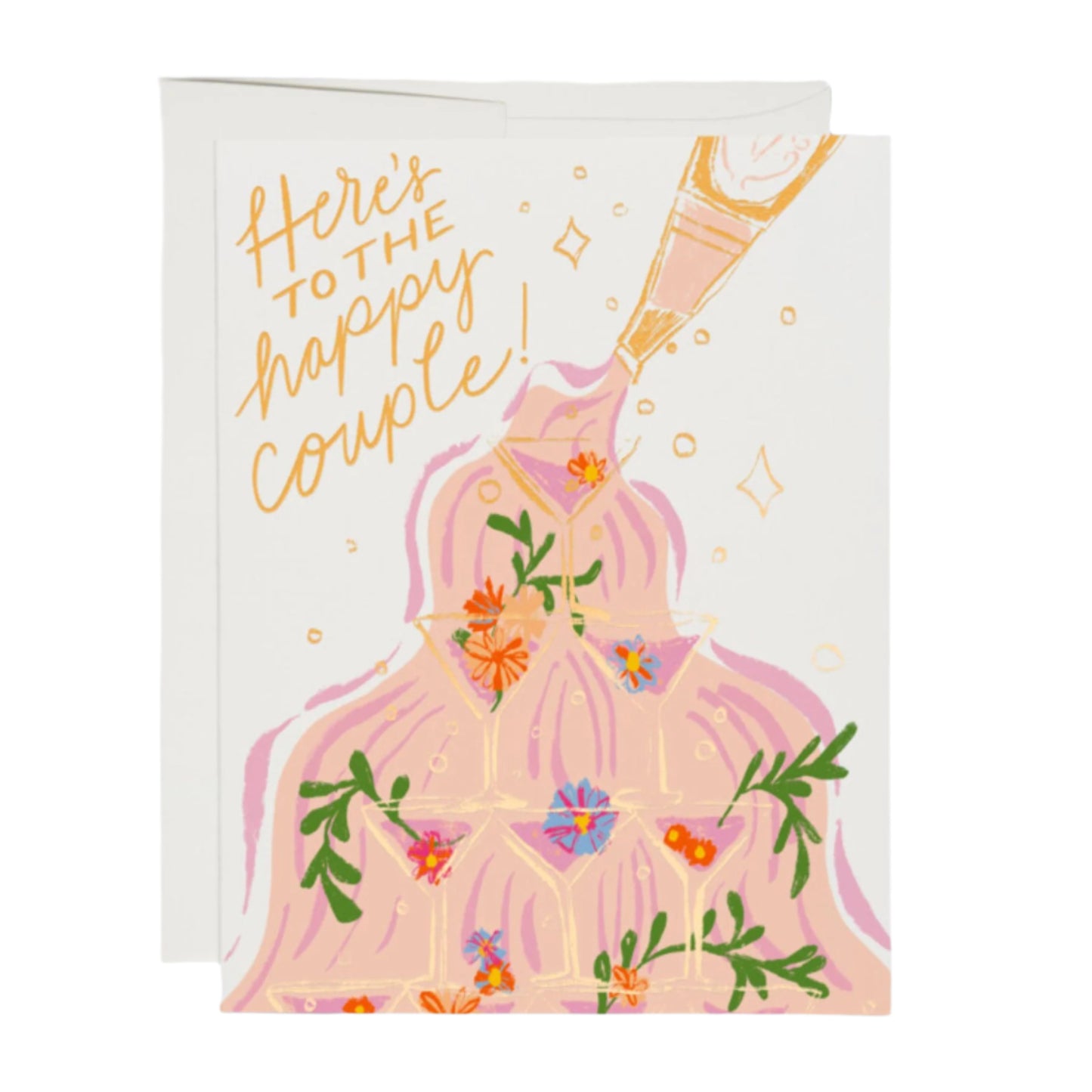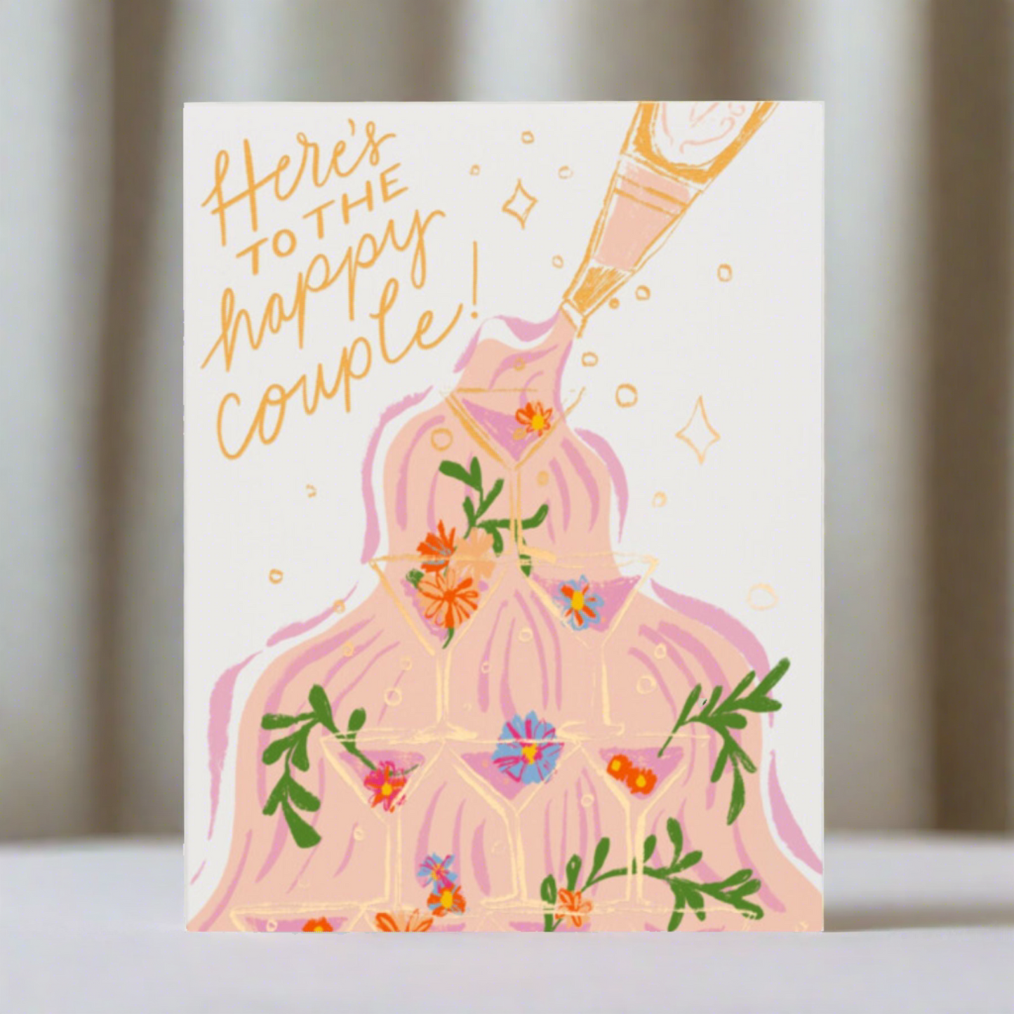 Who doesn't love the look of a champagne fountain on their wedding day? Add some luxury and send them some love on their big day with this gorgeous illustrated wedding card.