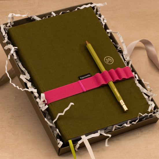 Upgrade to a premium stationery trio with the much loved Clifton notebook. This luxurious bookcloth notebook comes in ruled paper.