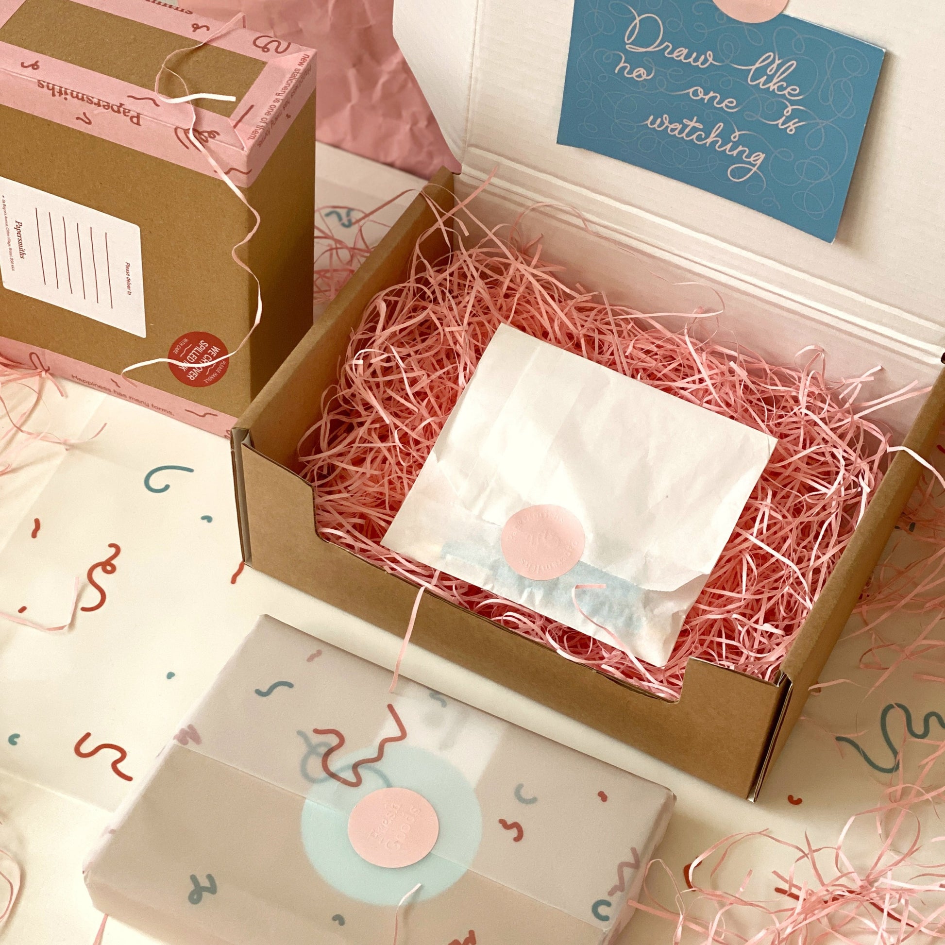 Have your purchase arrive Papersmiths-style by opting for our classic gift wrapping service. We'll carefully wrap your goodies in our bespoke paper, seal it with stickers and tape and nestle into pink shredded paper. A handwritten postcard will accompany your parcel. Let us know what you'd like it to say by entering your message in the box at checkout.