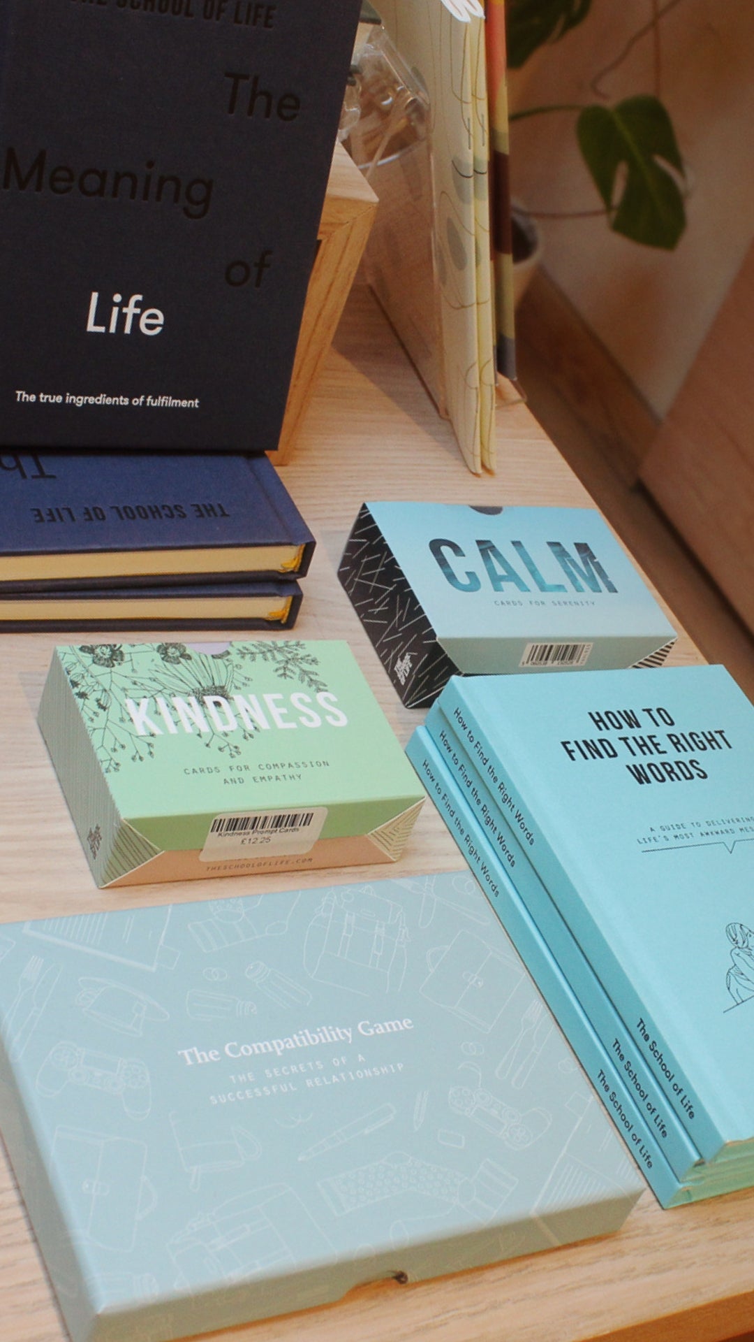 For a short time, The School of Life will occupy a space in our stores to showcase its self development books, prompt cards and other new products.