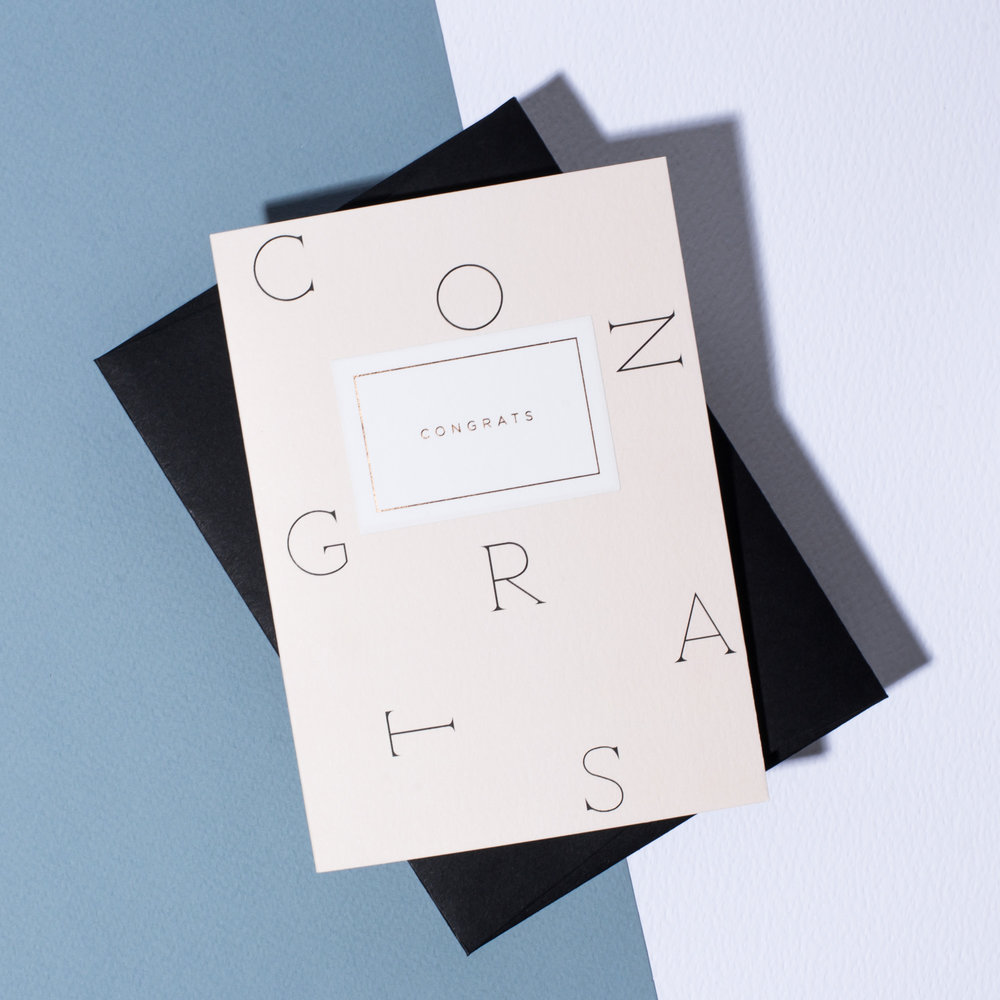 Designed and foil printed in London on 352gsm recycled paper, all cards are paired with a luxurious coloured envelope and are blank inside for your own handwritten message.