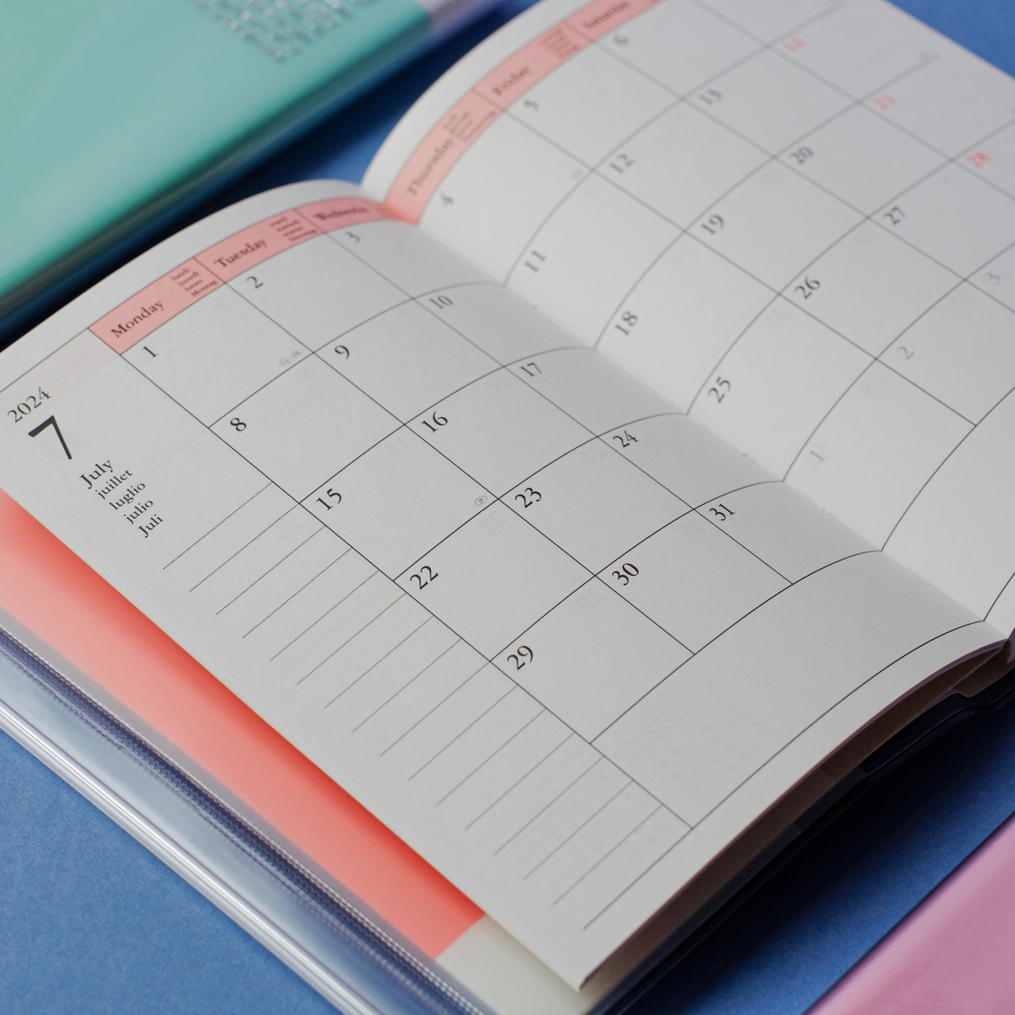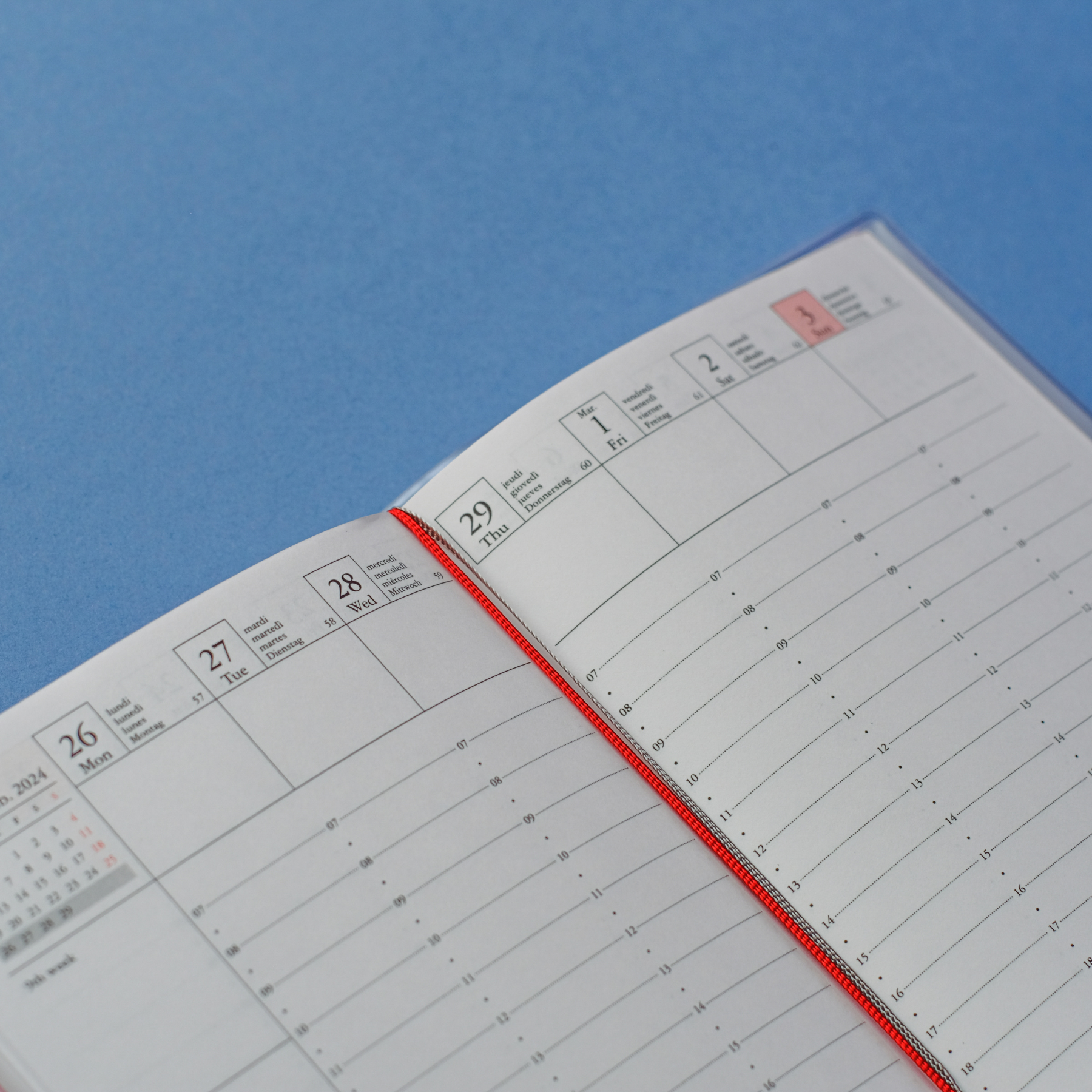This diary has a double-page spread for each week. A vertical 16 hour schedule runs from 7am to 10pm so you can neatly and clearly set out your appointments and meetings, making the most of your time. Monthly overview spreads allow you to get ahead of your bigger picture planning before you delve into each week's tasks.