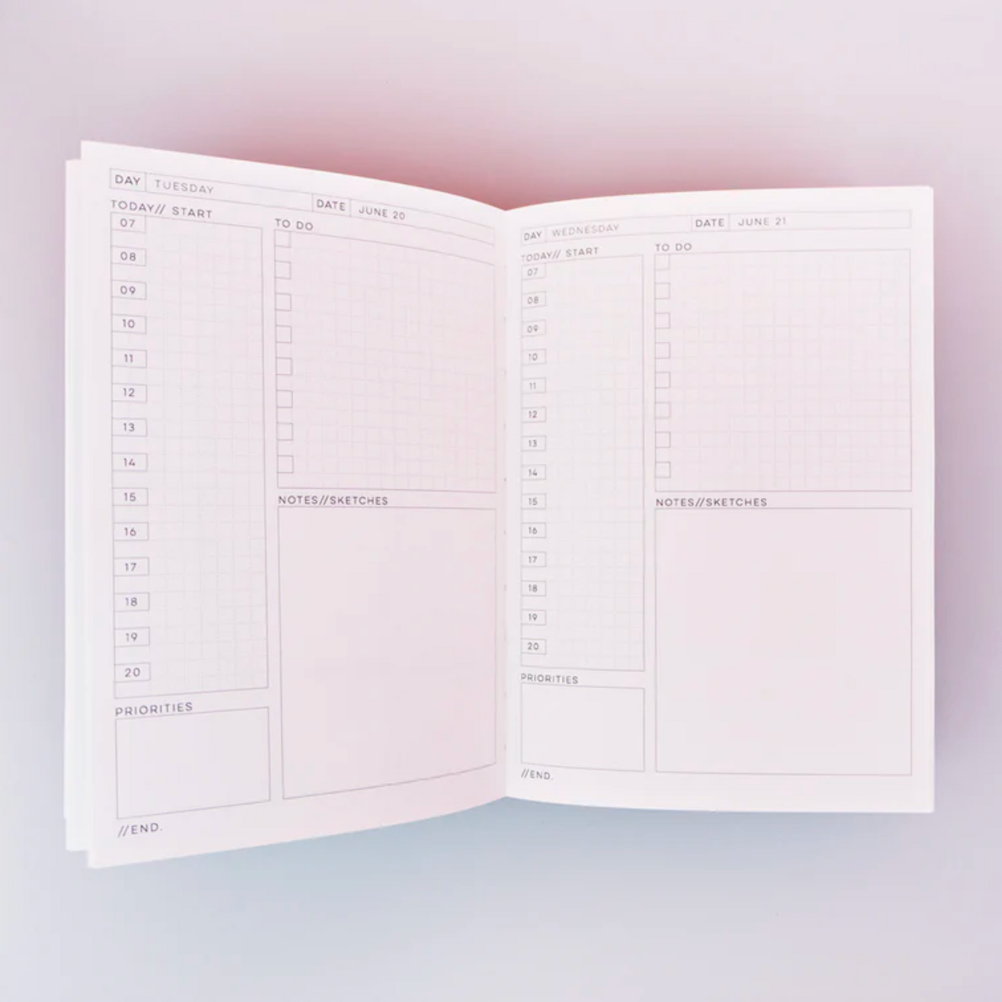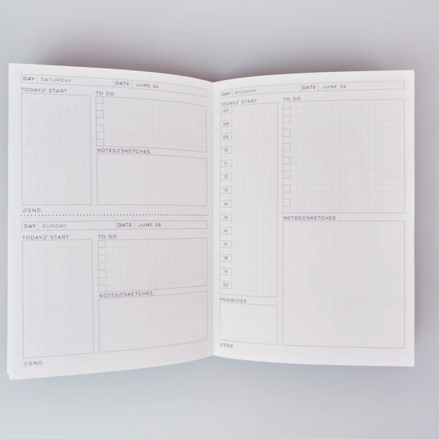 This 2023 dated daily planner is made by a family run music bookmaker right here in the U.K., and the inside sheets are made from music sheet paper. The soft cover is a luxurious, textured 250gsm G.F. Smith card and has 320 pages, made from a lovely textured 90gsm Munken paper. It has a day per page for weekdays, and a page split in half for the weekend - it's dated for the 2023 calendar year and it comes with a matching bookmark. It also has 4 note pages at the back.