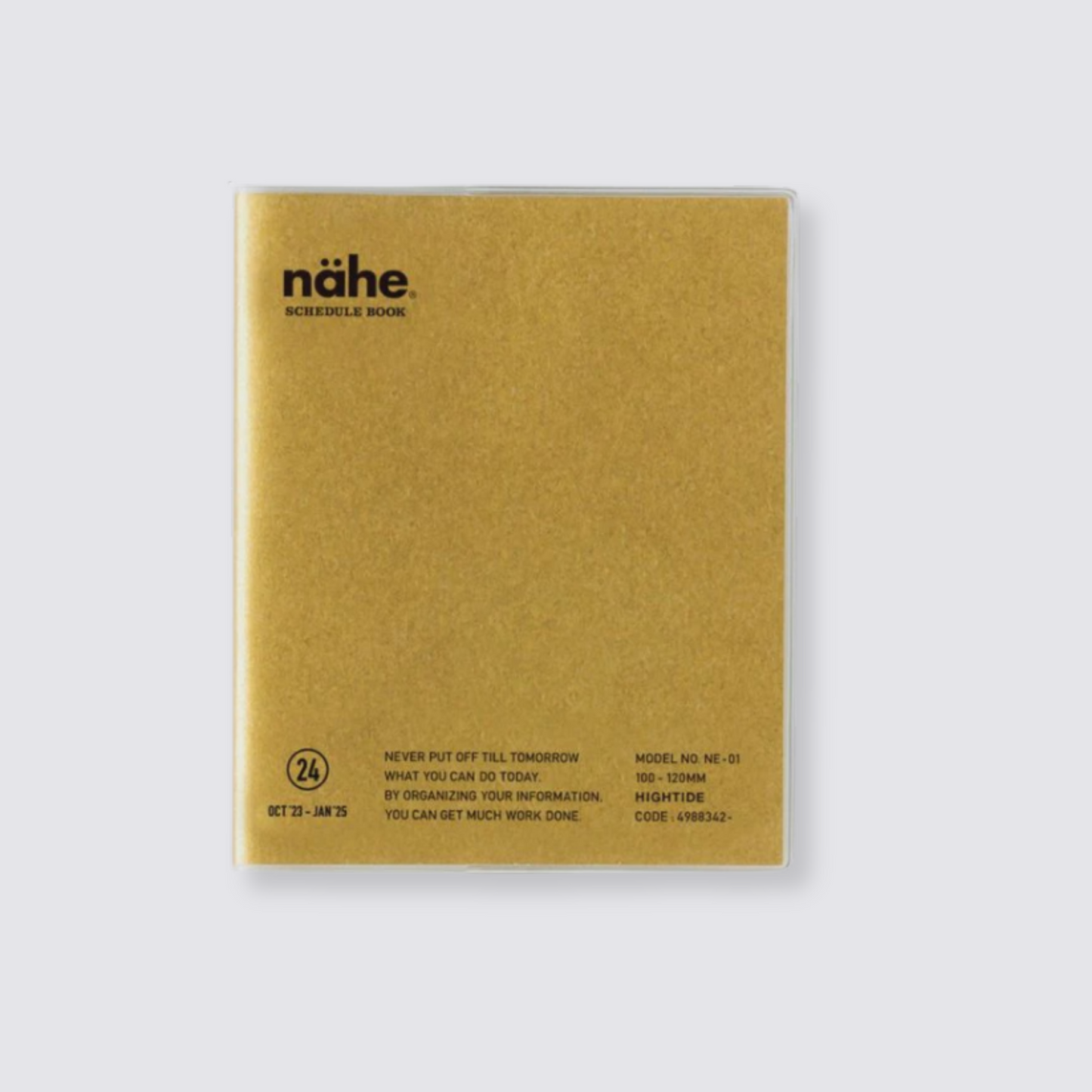 The Nahe Square diary in gold for 2024 has a retro-inspired, minimal monthly format. The tiny, pocket-sized diary features monthly spreads, including space for memos and weekly tasks, as well as blank space for other to-do's or ideas. It also includes separate ruled pages dedicated to notes.