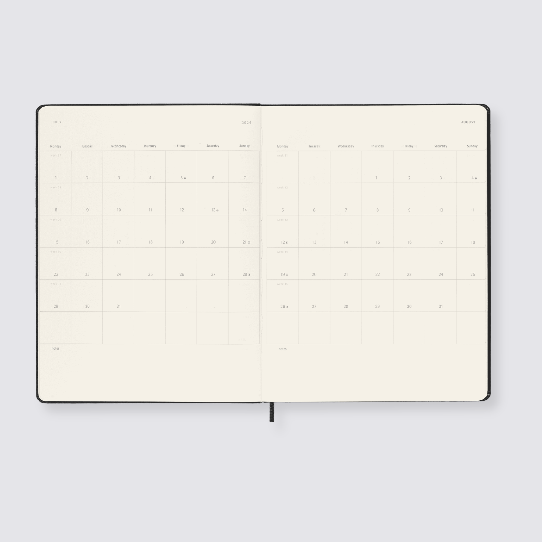 This extra-large planner from Moleskine will keep you right for all of 2024. The week-to-view layout shows the week on the left page, with a note page to the right.