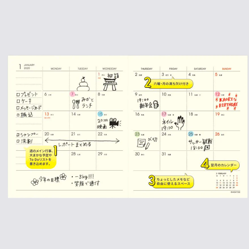 - Includes yearly planner and monthly planner