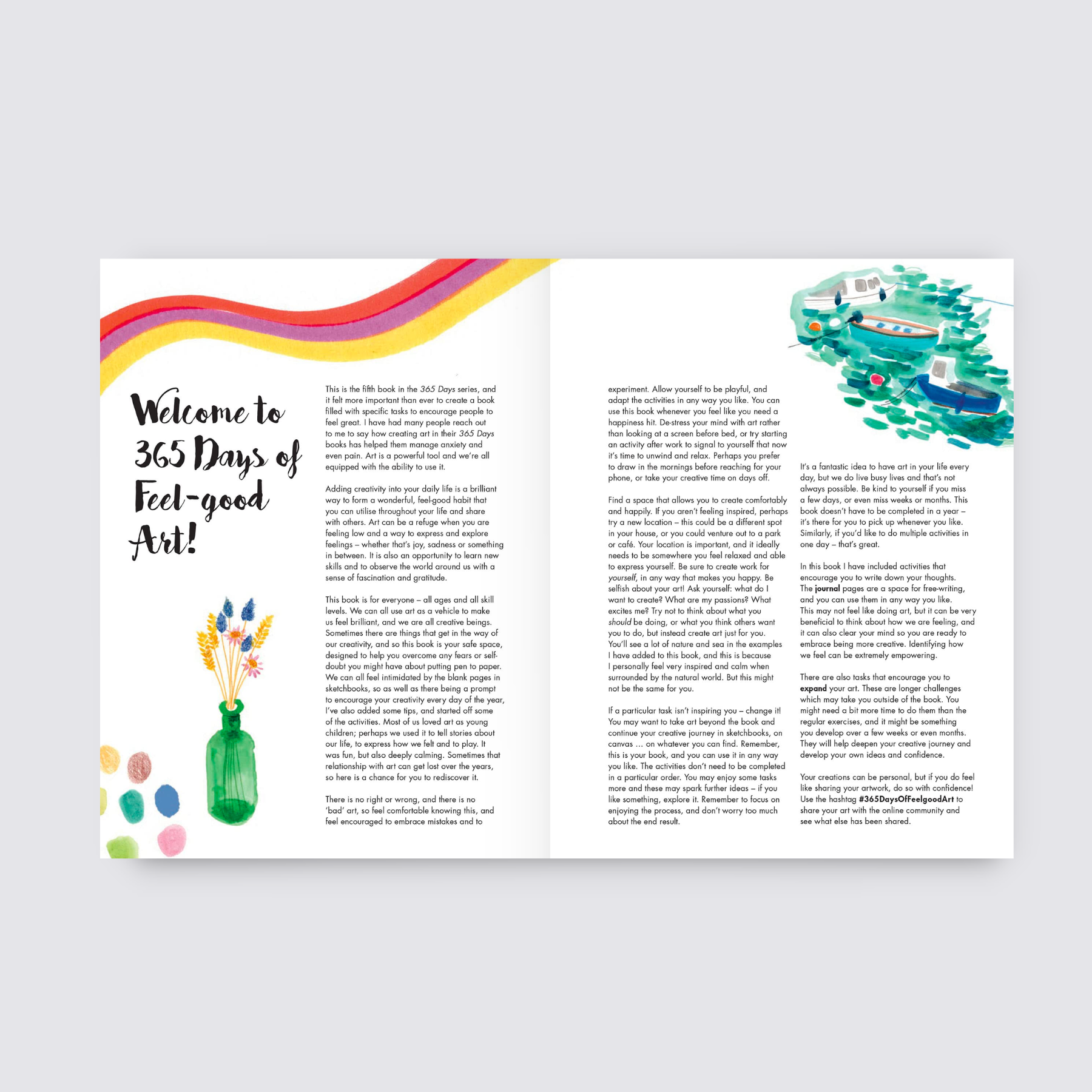 In 365 Days of Feel-good Art, Lorna Scobie explores art-based tasks which will help to boost your overall confidence, wellbeing and happiness.