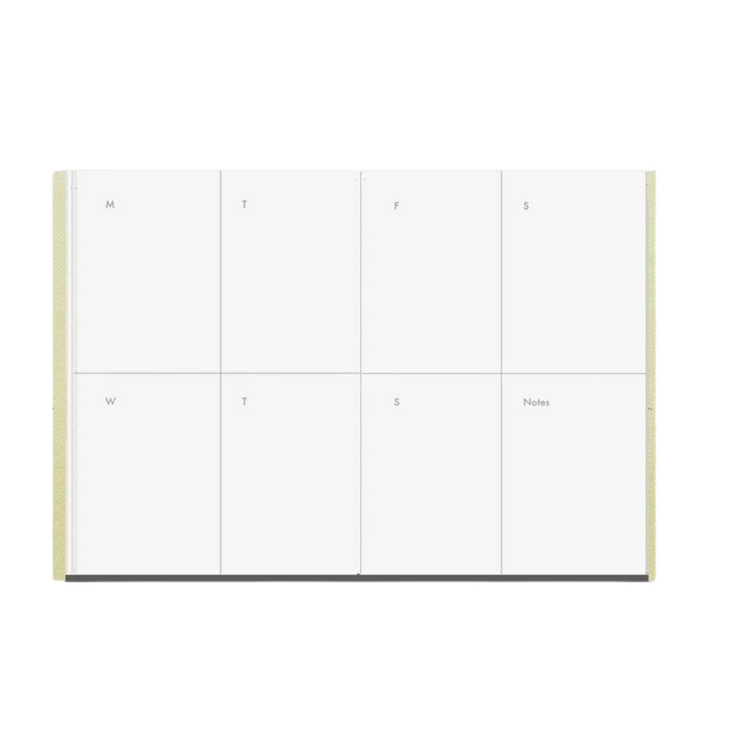 - Inner Pages include: M, T, W, T, F, S, S, Notes