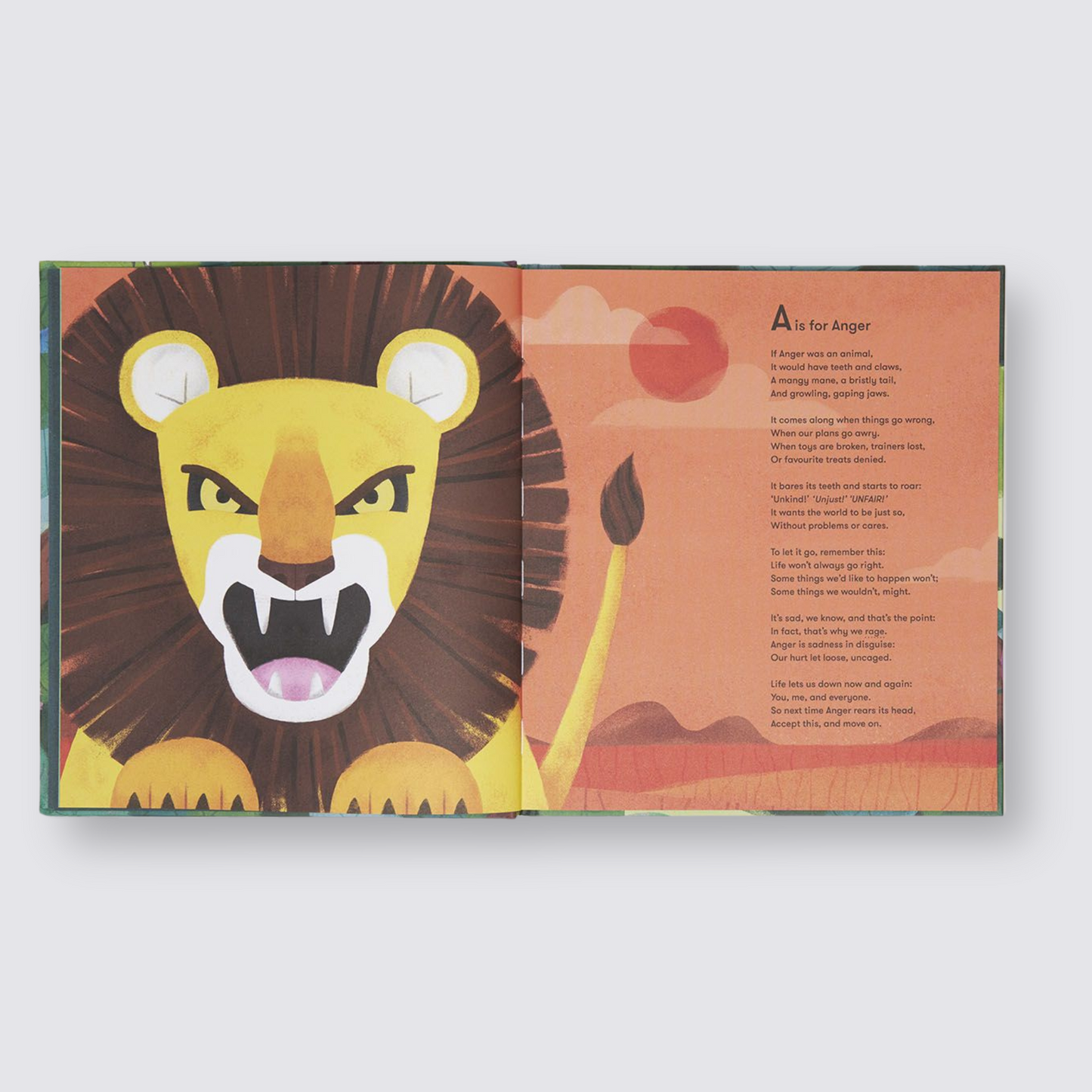 An Emotional Menagerie is an emotional glossary for children. A book of 26 rhyming poems, arranged alphabetically, that bring our feelings to life - Anger, Boredom, Curiosity, Dreaminess, Embarrassment, Fear, Guilt, and more.