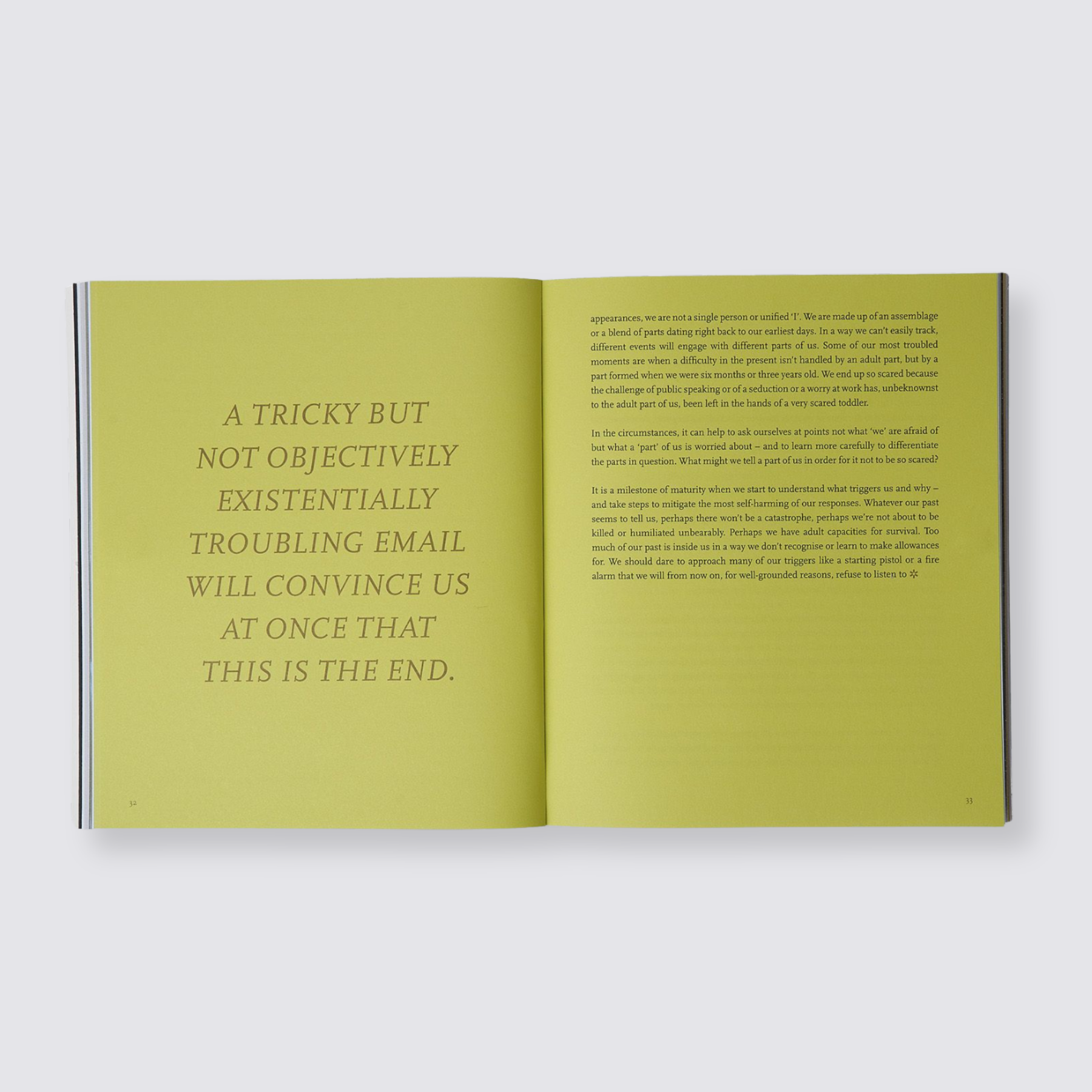 Too often, we bottle up our anxieties or try to avoid looking at them directly. We are ashamed of how worried we are and end up feeling isolated and yet more worried. None of this is necessary. Anxiety is deeply normal and, like so much else that troubles our minds, it can be understood and brought under our control. We all deserve to wake up every day without a sense of foreboding.