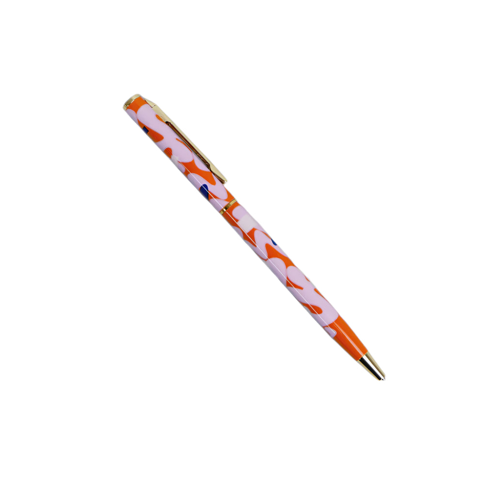 Make writing a little more fabulous with this printed metal pen with a gold coloured trim. It has a fine ball point and black ink. And it's refillable! Refills sold separately.