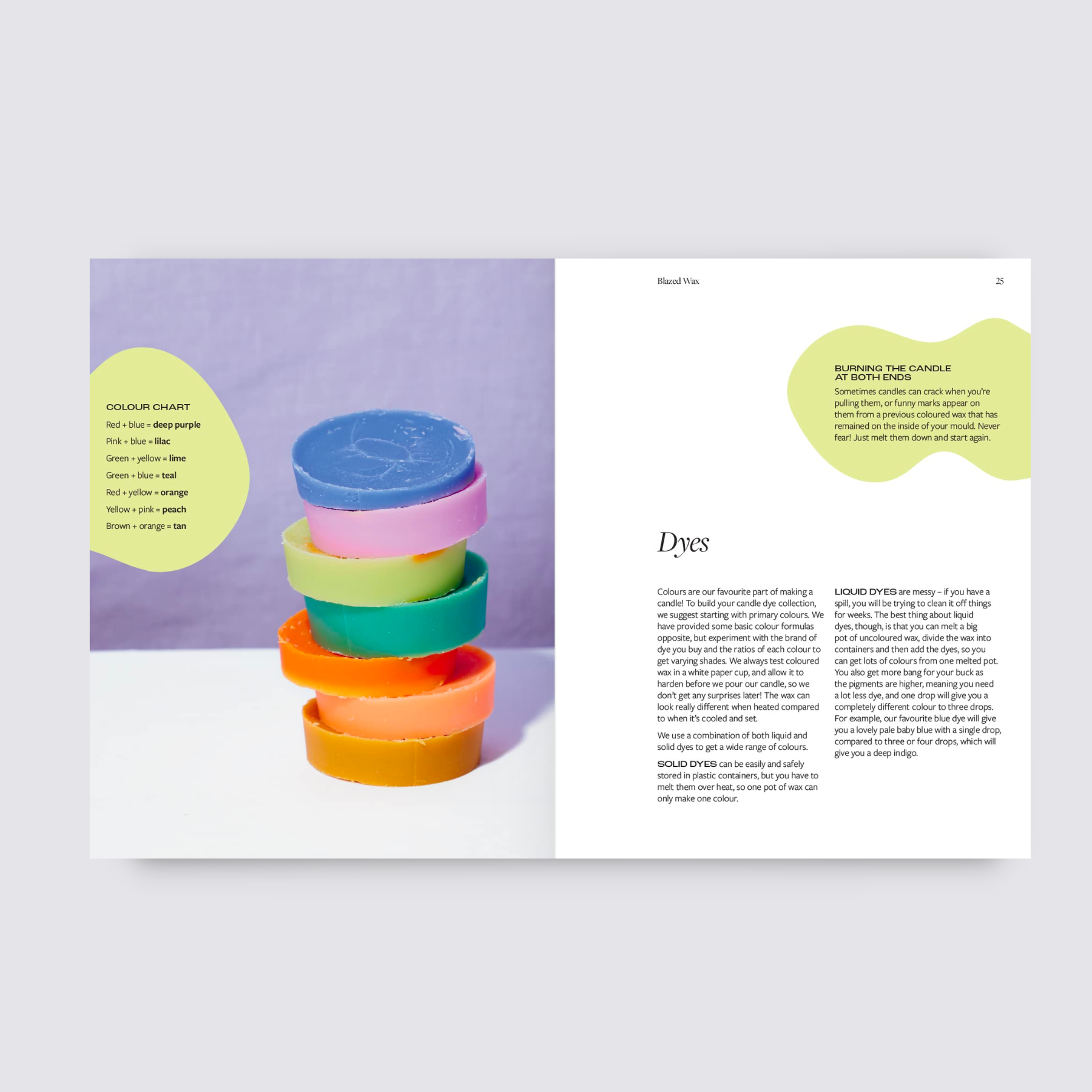 Blazed Wax is a comprehensive and colourful guide to contemporary candle making from friends and designers Ruby Kannava and Emma Cutri, with twenty-five projects for beautiful candles and candleholders that will light up your life.