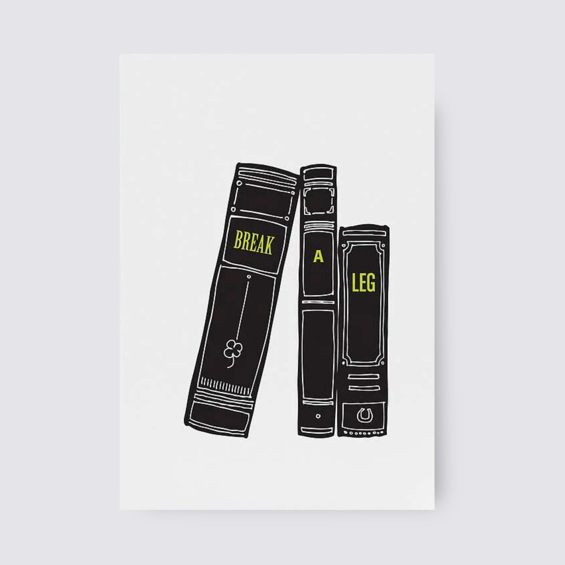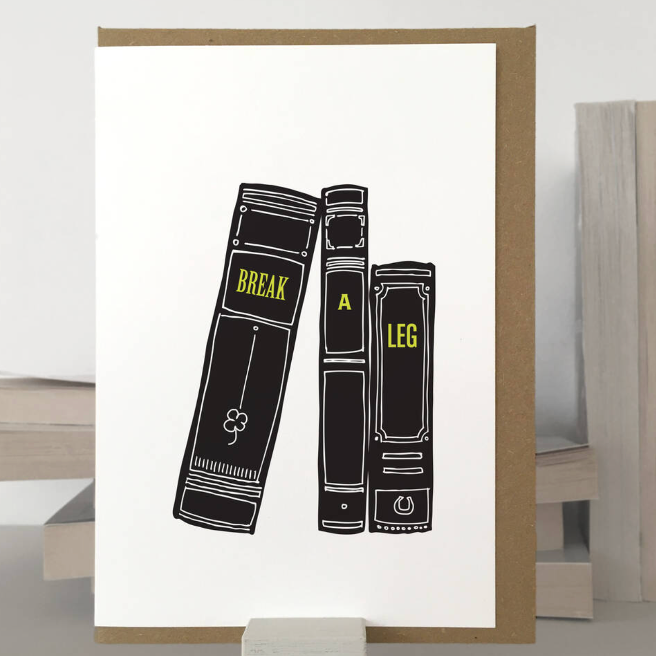 Break a leg greetings card. Our break-a-leg card is the perfect way to send a big dose of good luck their way. Whether it's a job interview, a big presentation, or a performance, you're covered for every life story occasion. This card comes with a kraft envelope for that extra special touch. Wishing you all the best.