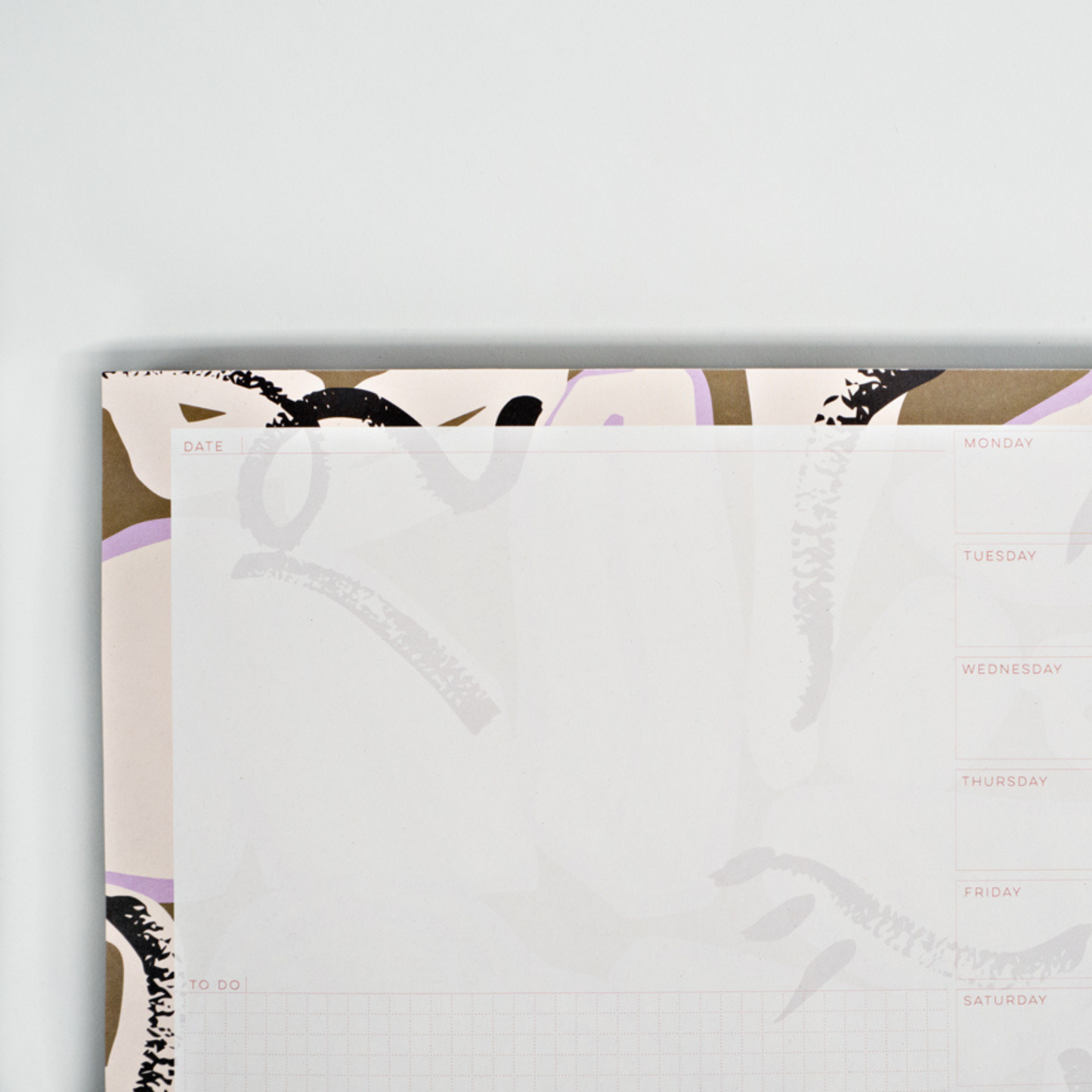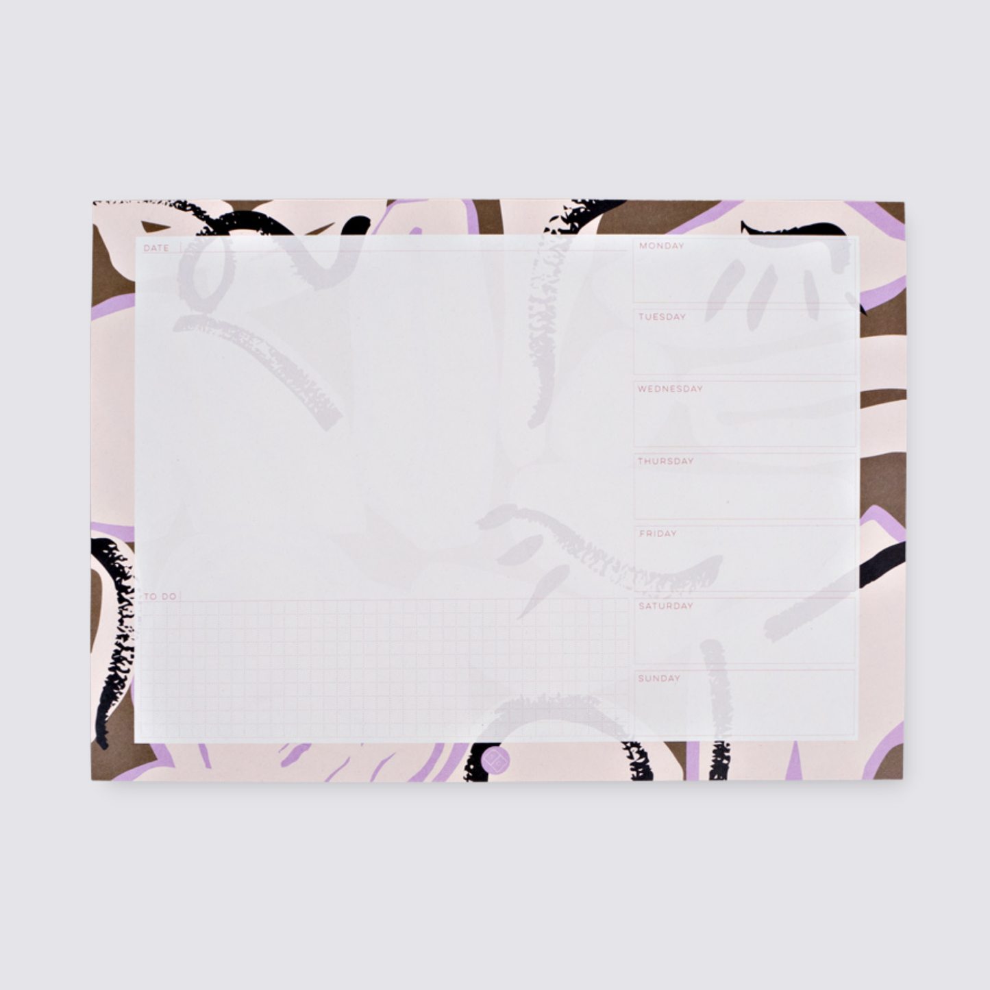 Boasting an abstract summer inspired print, this pad embodies both flair and functionality. The dot grid weekly layout ensures your notes stay impeccably organised. Each A4-sized pad (21cm x 29.7cm) offers around 52 pages of 115gsm FSC-certified recycled paper, a testament to sustainability.