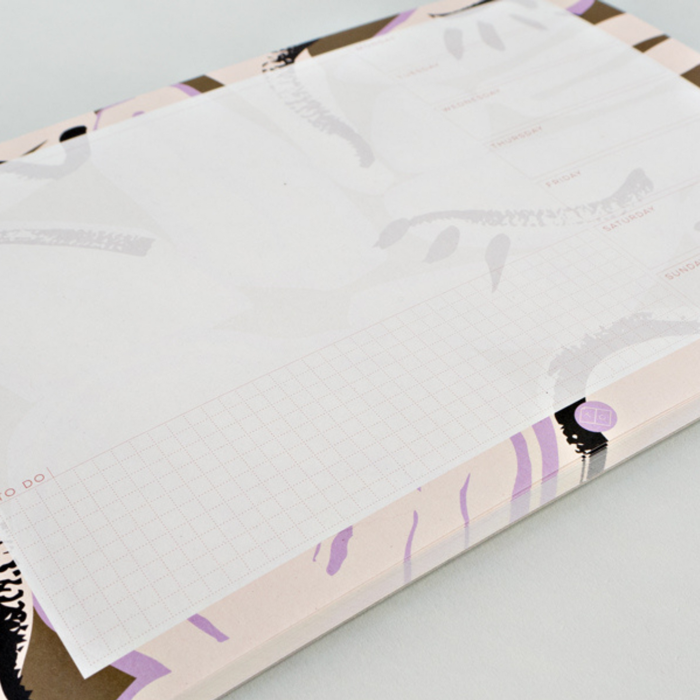 Printed with vegetable inks and backed by recycled cardboard, it aligns with eco-conscious values. Packaged in a biodegradable film bag, this pad arrives in pristine condition, ready to streamline your planning journey.
