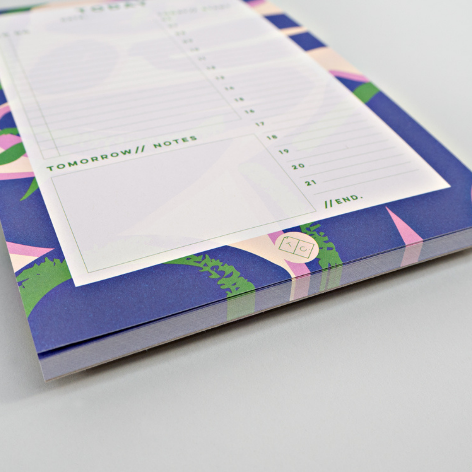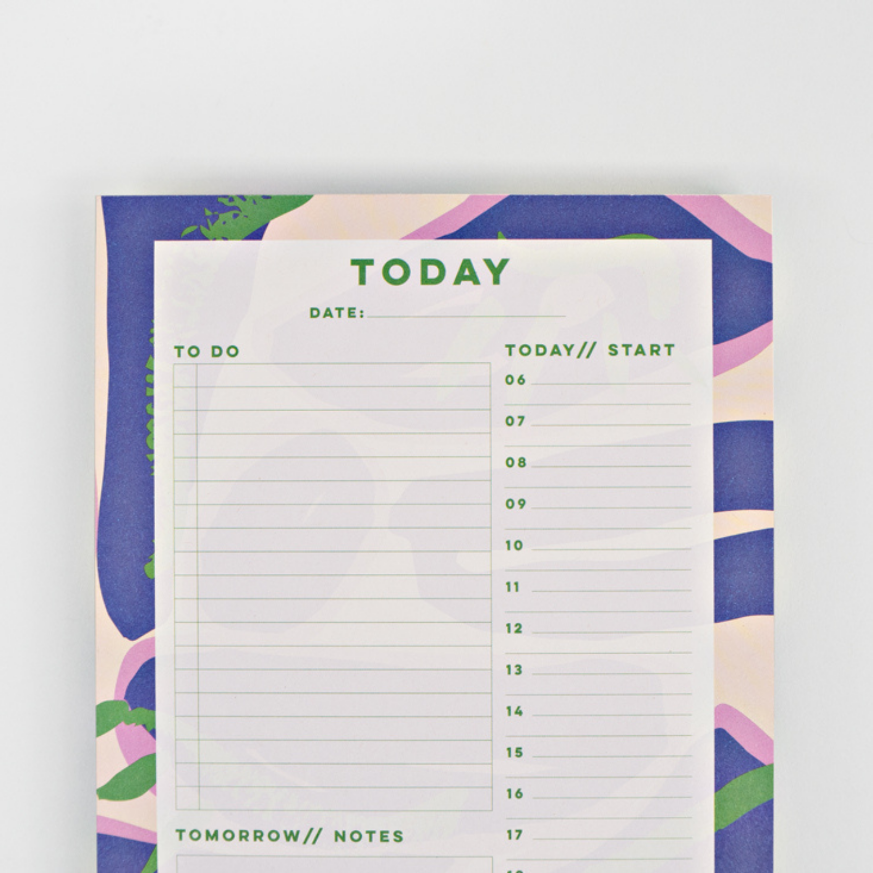 Introducing the Capri Daily Planner Pad – your answer to visualizing your entire day with precision. This daily planner pad is a must-have crafted to meet your organisational demands. Showcasing an abstract Summer-inspired print, merging fun with functionality. Designed with segmented sections, it aids in meticulously planning every aspect of your day.