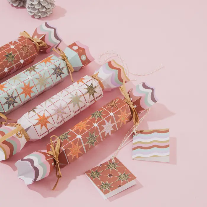 All of the paper, ribbon and materials included in the Christmas cracker kits are 100% recycled or recyclable, made from sustainably sourced cardstock, Make Your Own Christmas Cracker Set includes: