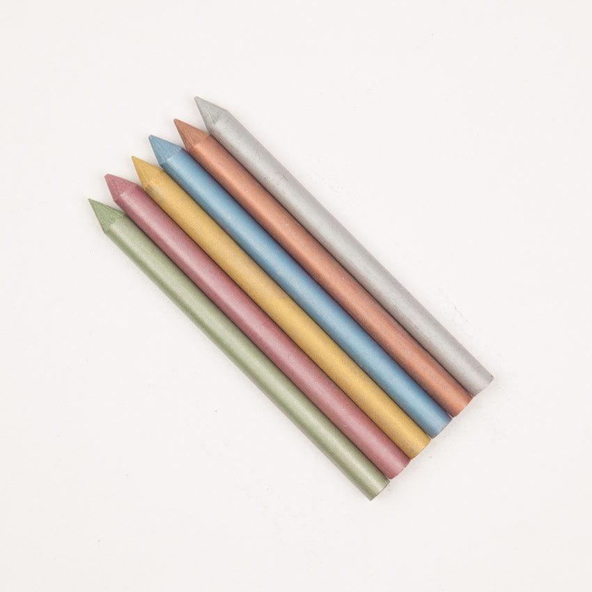 We have plenty of options when you need refills for your chunky mechanical pencil. You can choose from 2B graphite, white chalk, a drawing set that includes graphite, coloured conte, and charcoal, or a magic multi-coloured lead that changes colour as you draw!