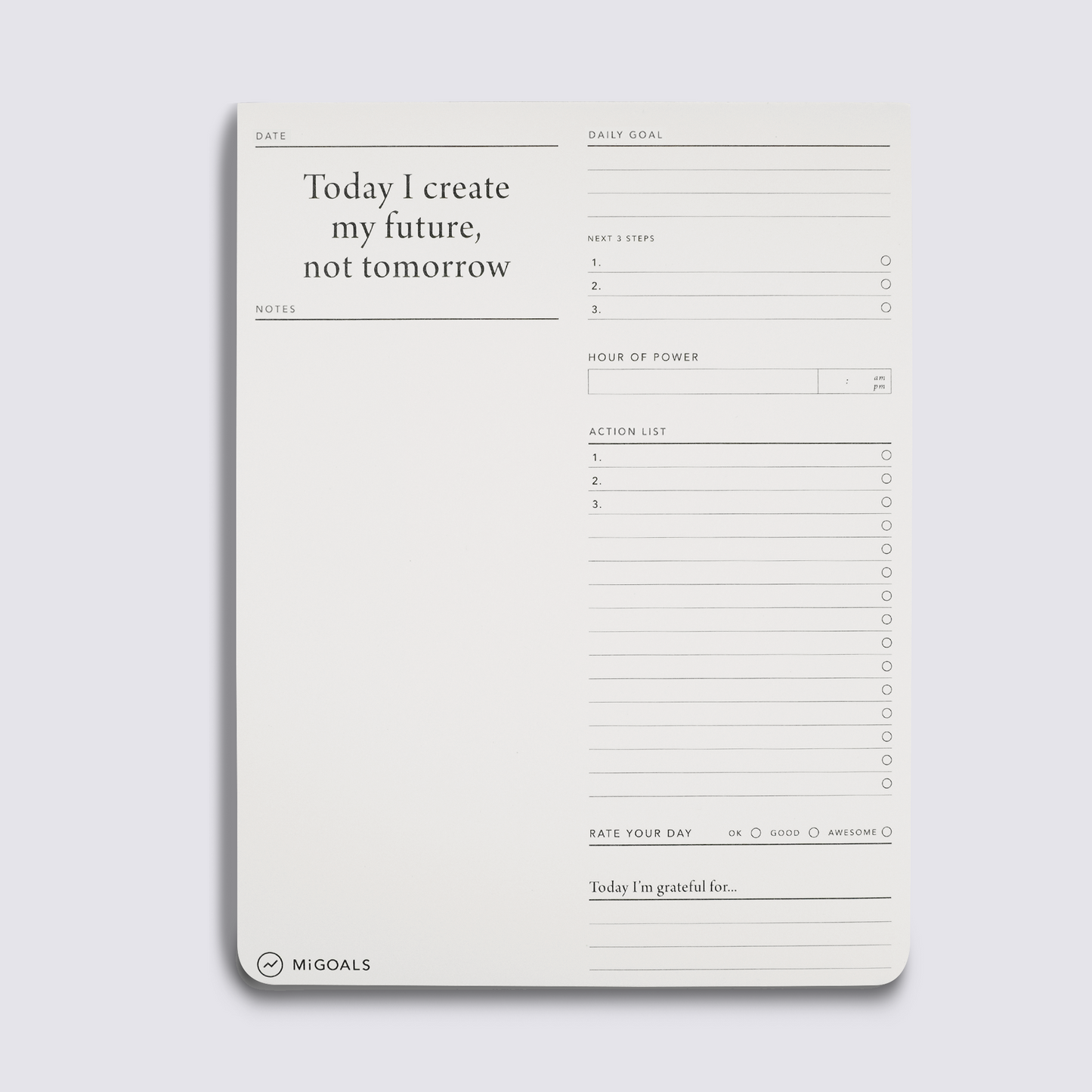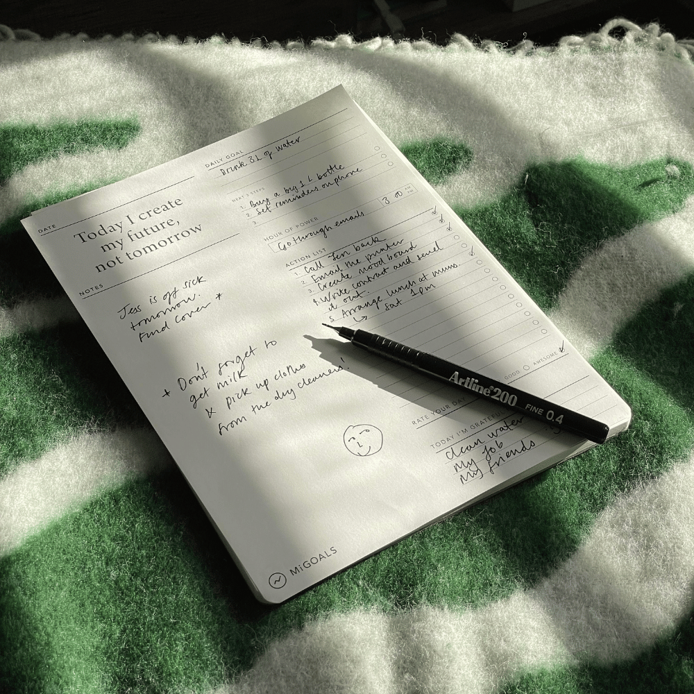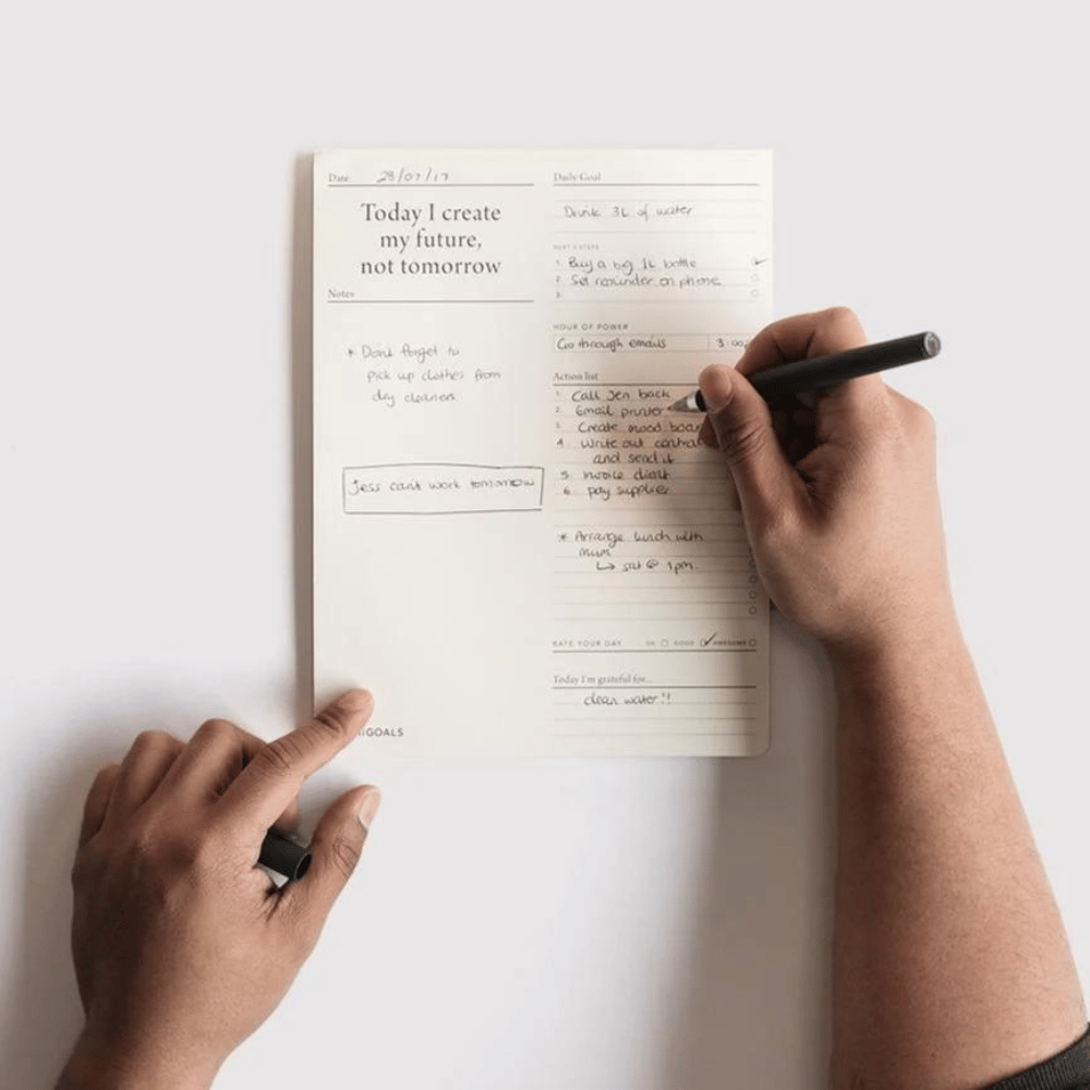 With dedicated space for goal setting, an action list and notes, it also encourages you to reflect and identify what you're grateful for each day.