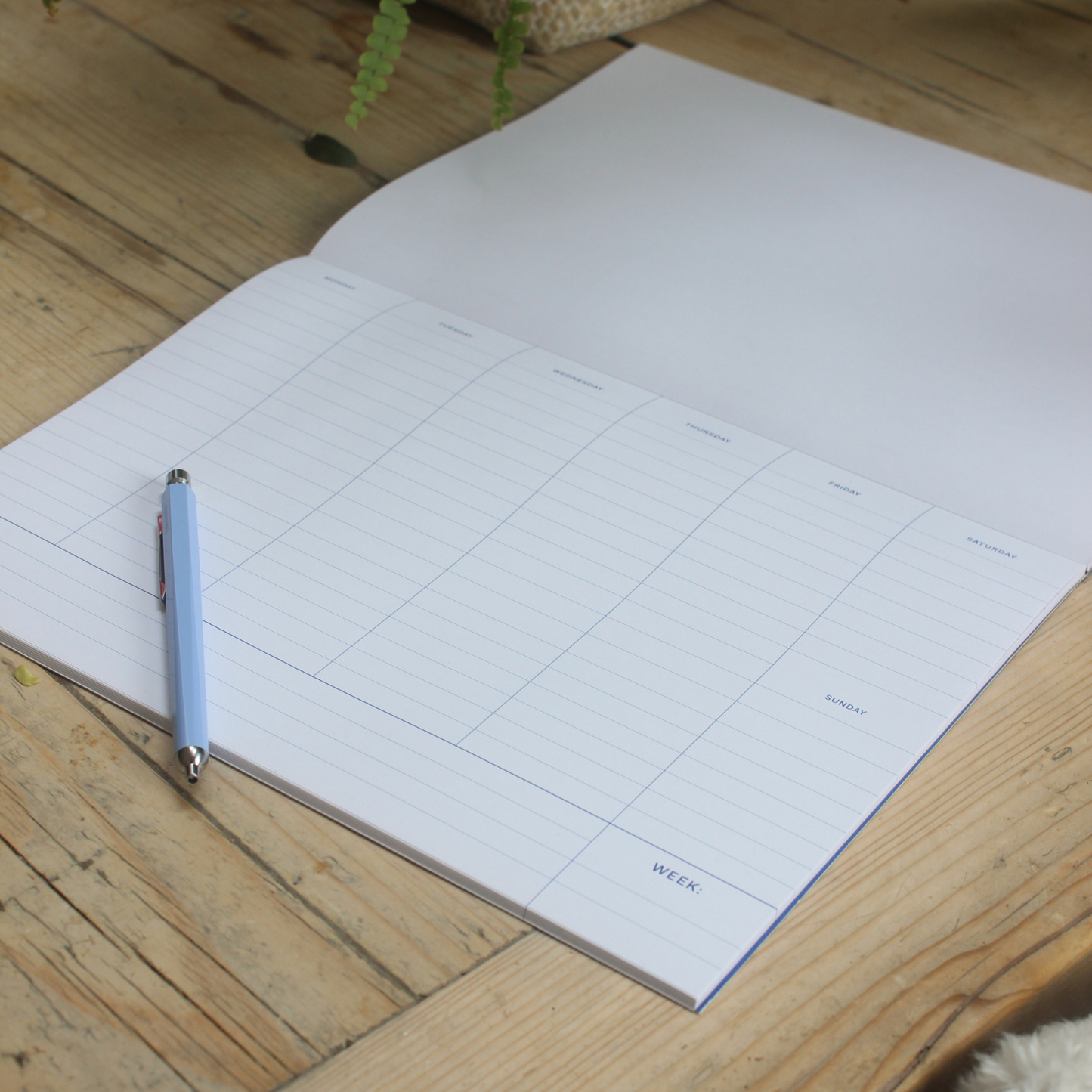 The undated planner can be used for extra busy weeks, or just for every day! The weekly planner is designed to leave on the table or on your desk. The lavender blue cover with a daisy print gives a cheerful touch to your interior.