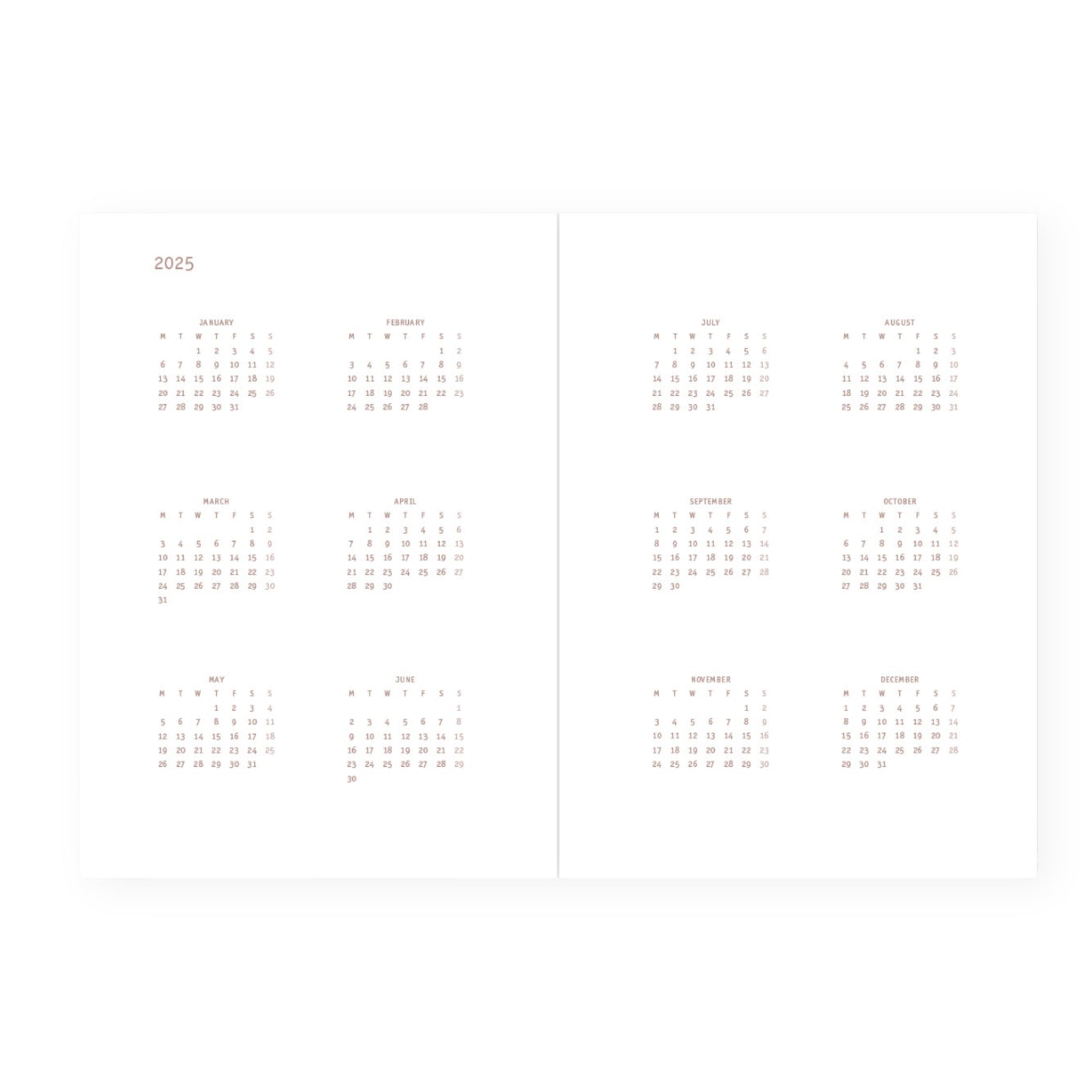 Inside you'll find: a full 2025 calendar, monthly double-page spreads, a daily planner, and a couple of pages for jotting down your free thoughts.