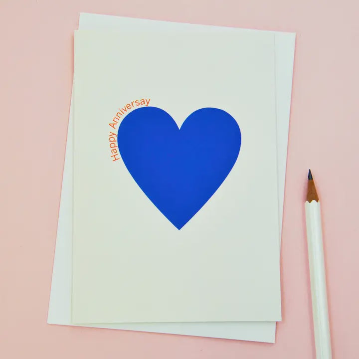 Say Happy Anniversary with this Royal Blue greeting card and a Tangerine type.