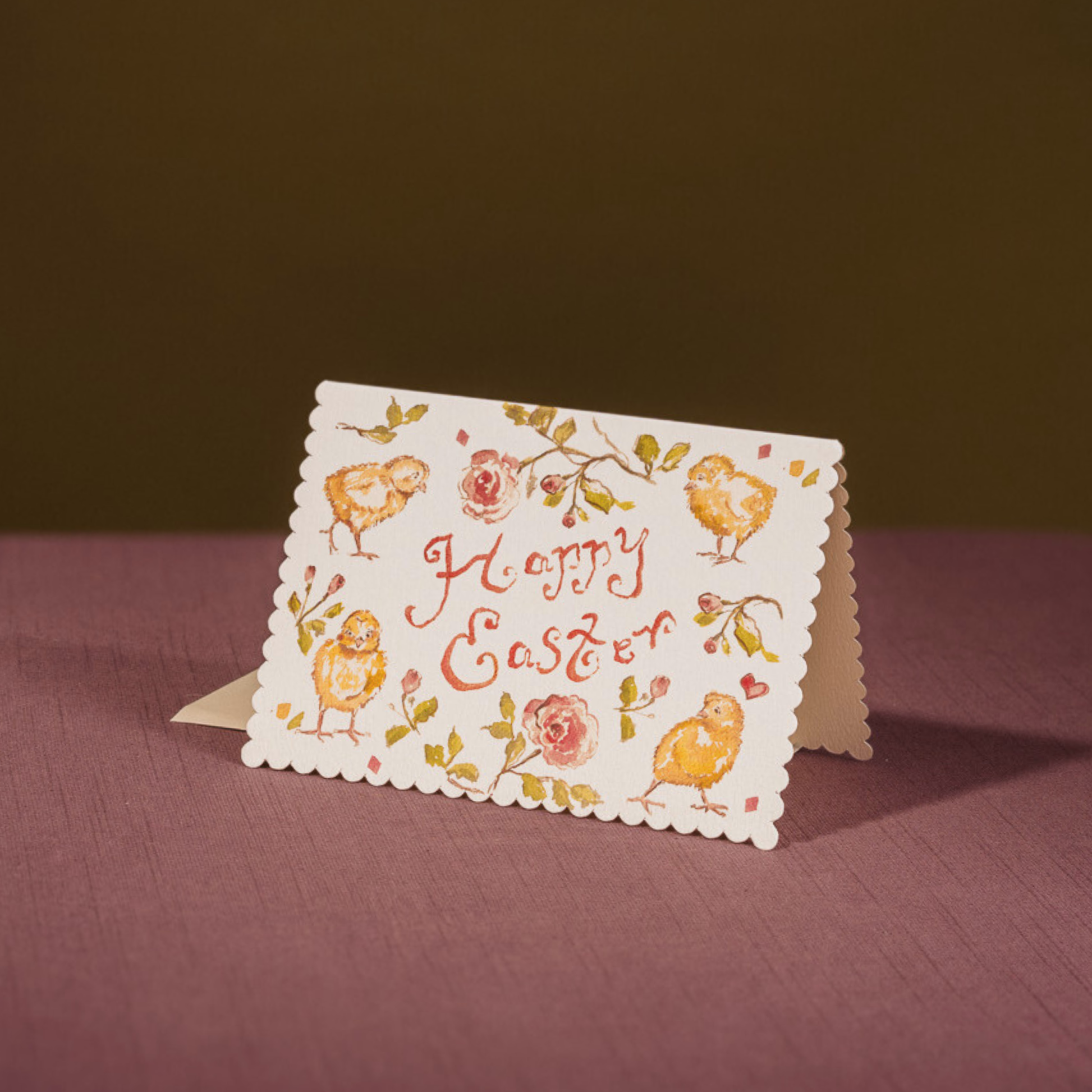 Lovingly hand-painted watercolour Easter greetings card illustration.