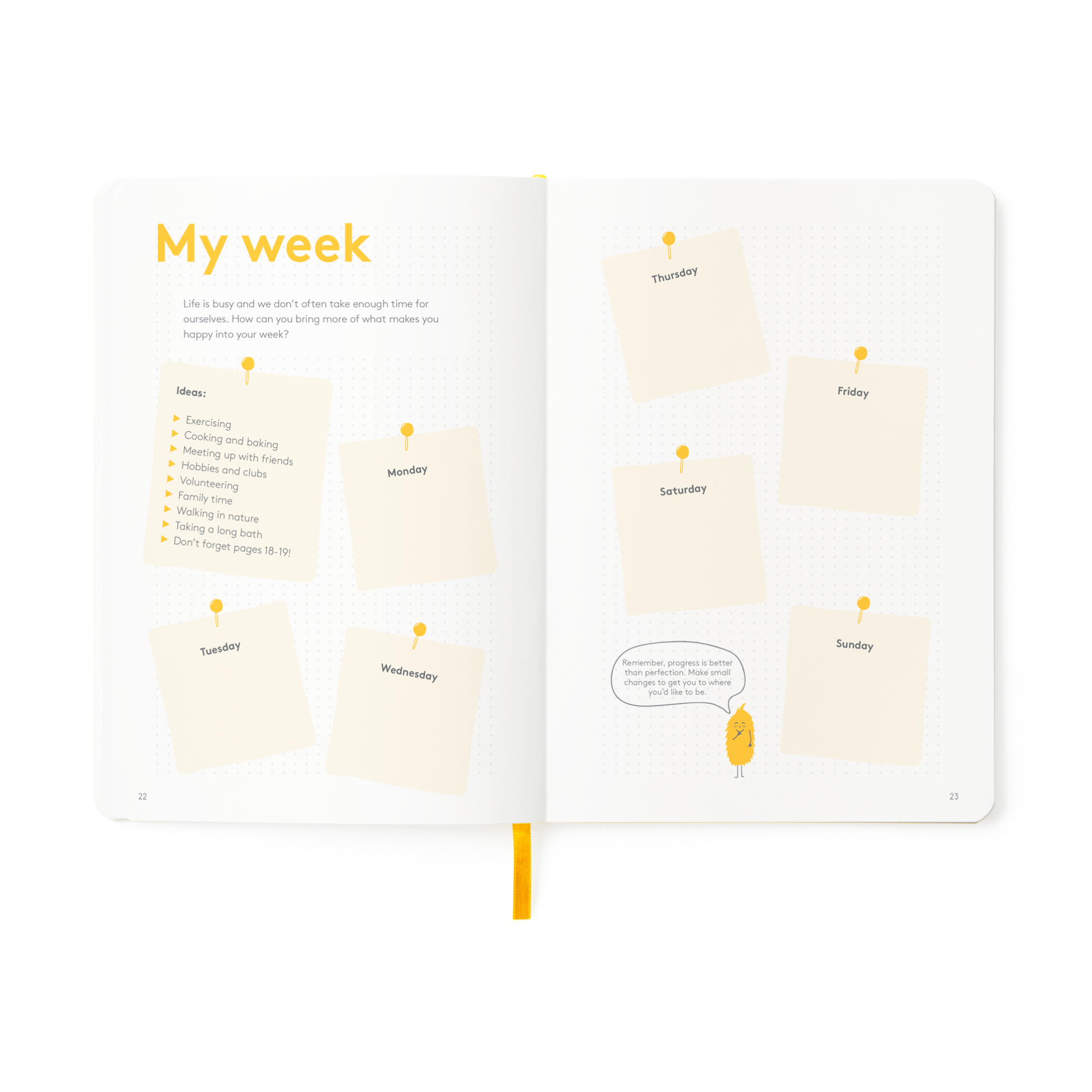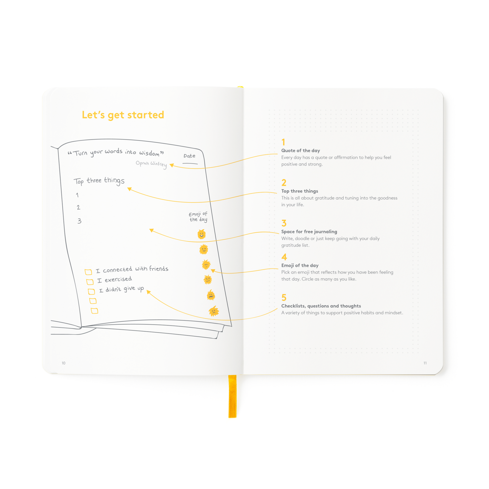 - Elastic and ribbon to keep your journal private and mark your page