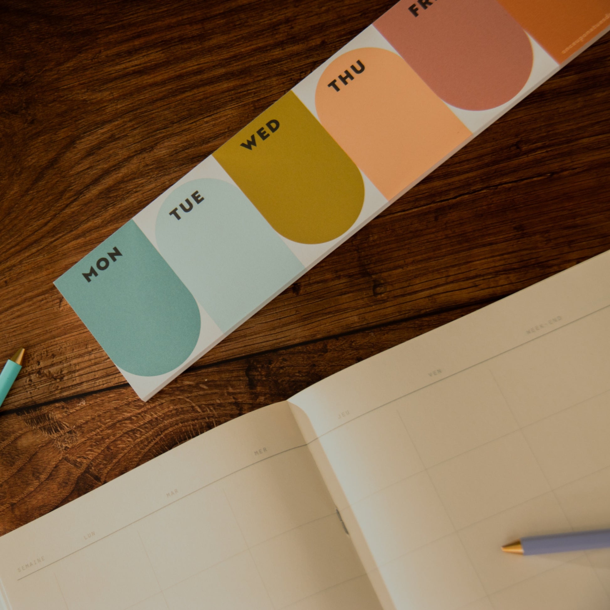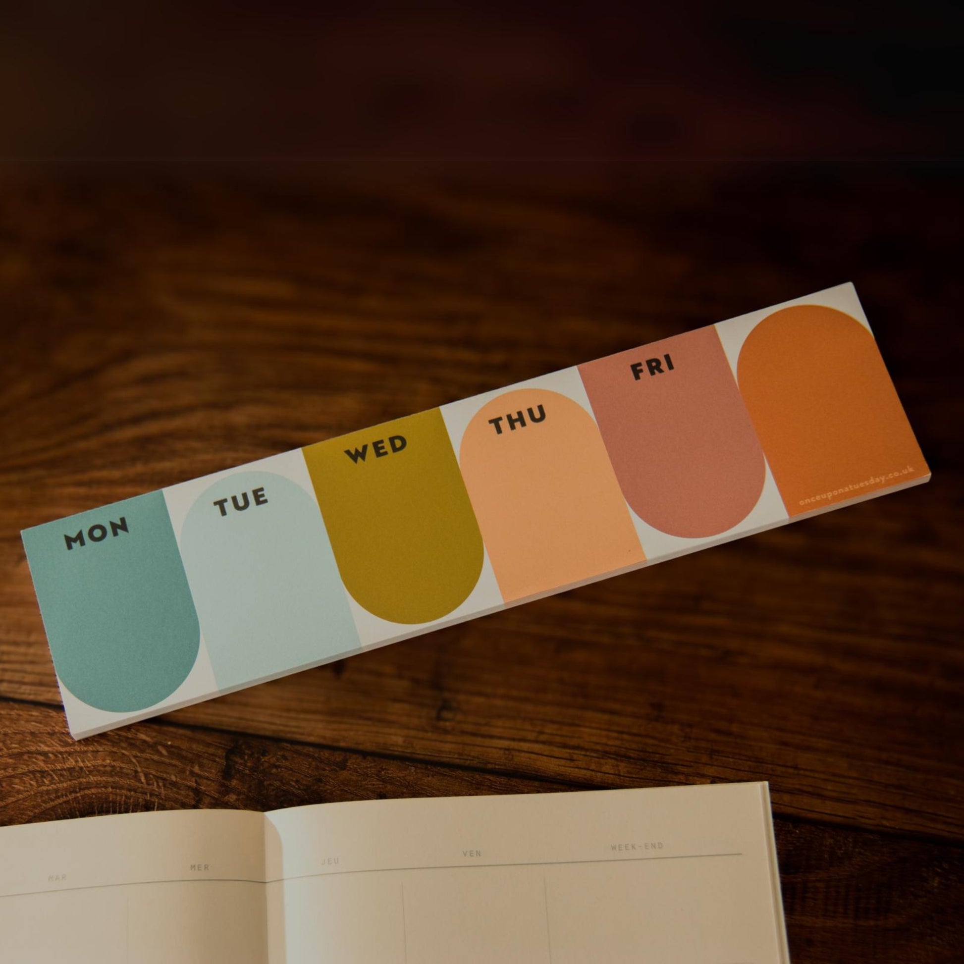 The boho inspired arches desk planner runs from Monday to Friday and has space for notes.
