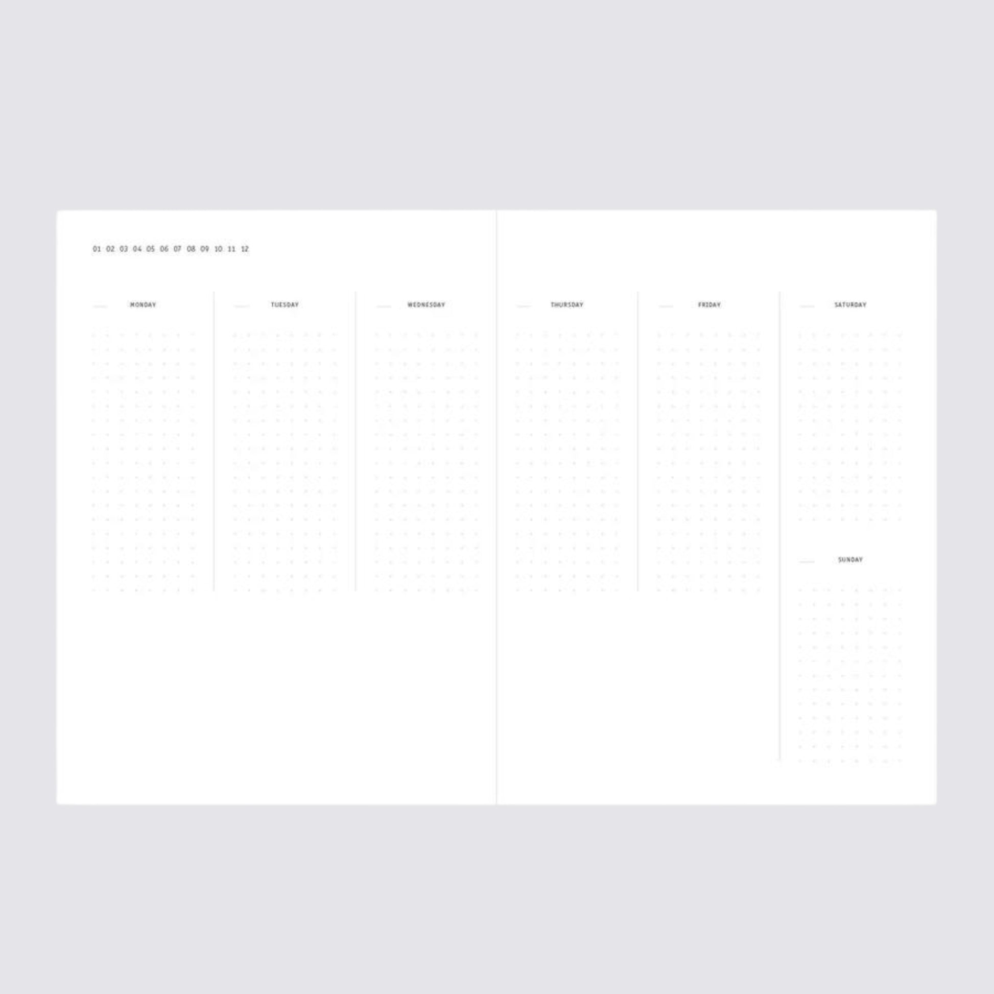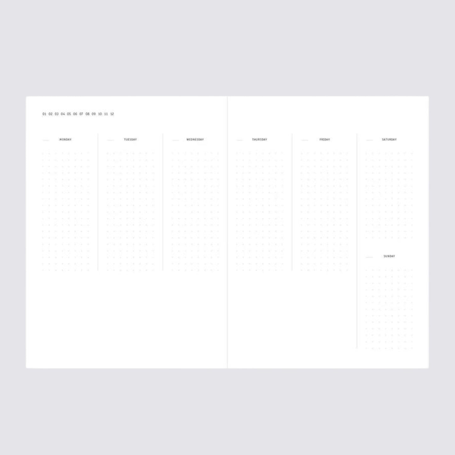 This Klasyk planner comes with a hardcover treated with an extra through-dyed cardboard layer. The book linen binding ensures the calendar can be easily opened and laid completely flat. The calendar contains undated spreads for the yearly planner, as well as monthly and weekly plans - this means that you can start any day of the year!