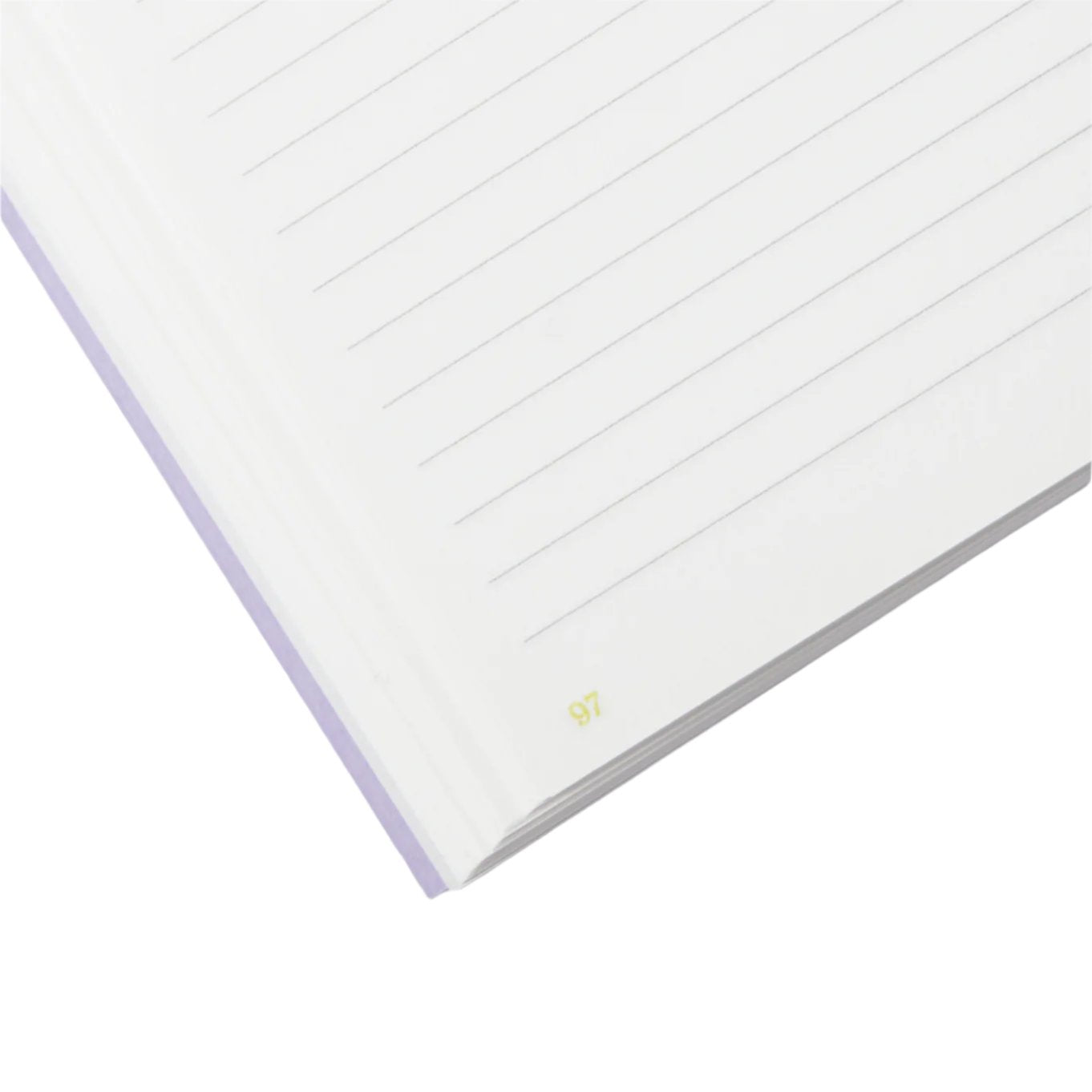 We’ve used lay flat binding so the notebook opens without forcing the spine. This binding method backlines the inner pages within the spine, leaving them free to move. The cover is bound on with front and rear hinges only.