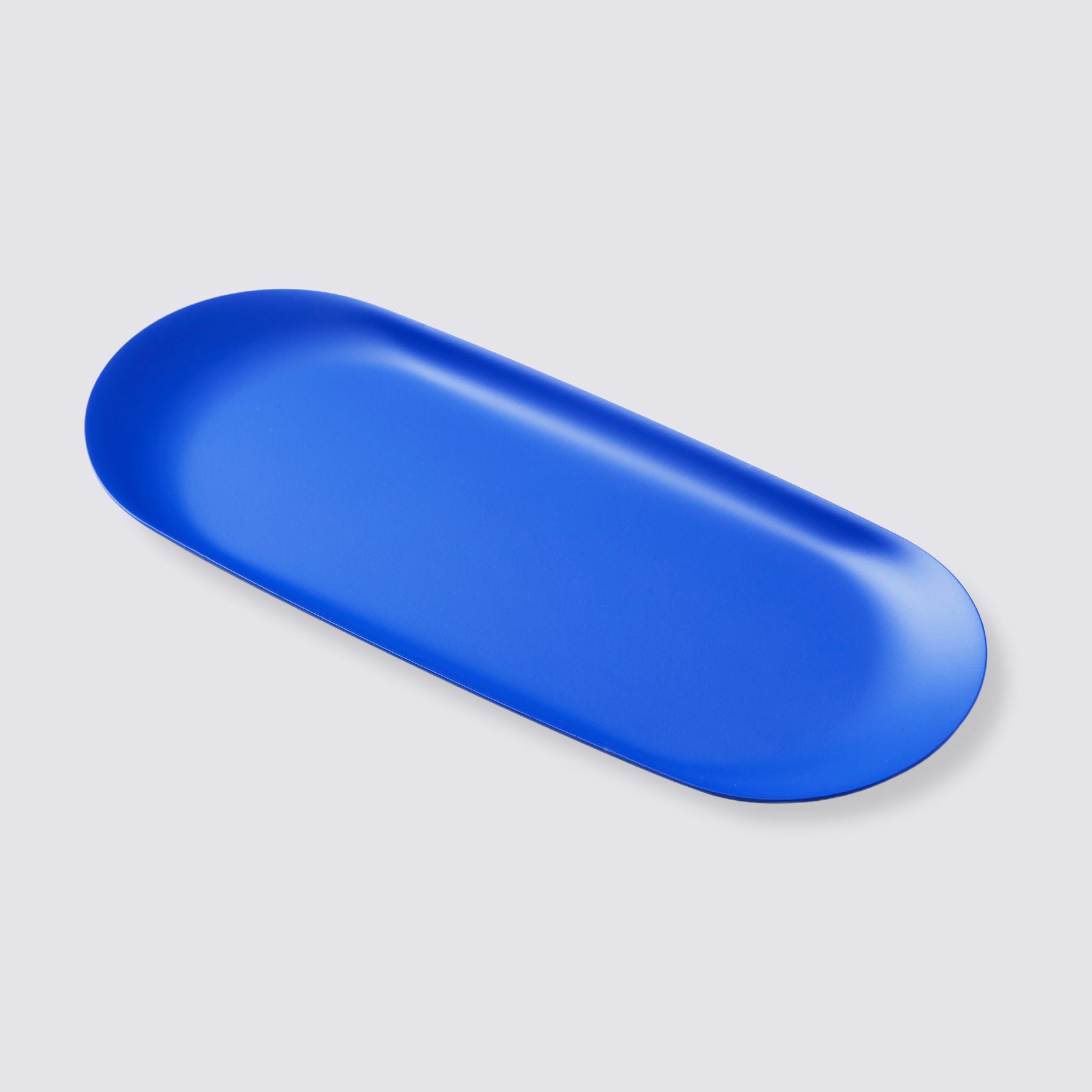 Introducing Lola, a stylish desk tray made of steel, here in a blue colourway. This modern storage tray can be used for stationery, on the dining table, for fruits, a key dish and more. It's a trendy addition to your home.