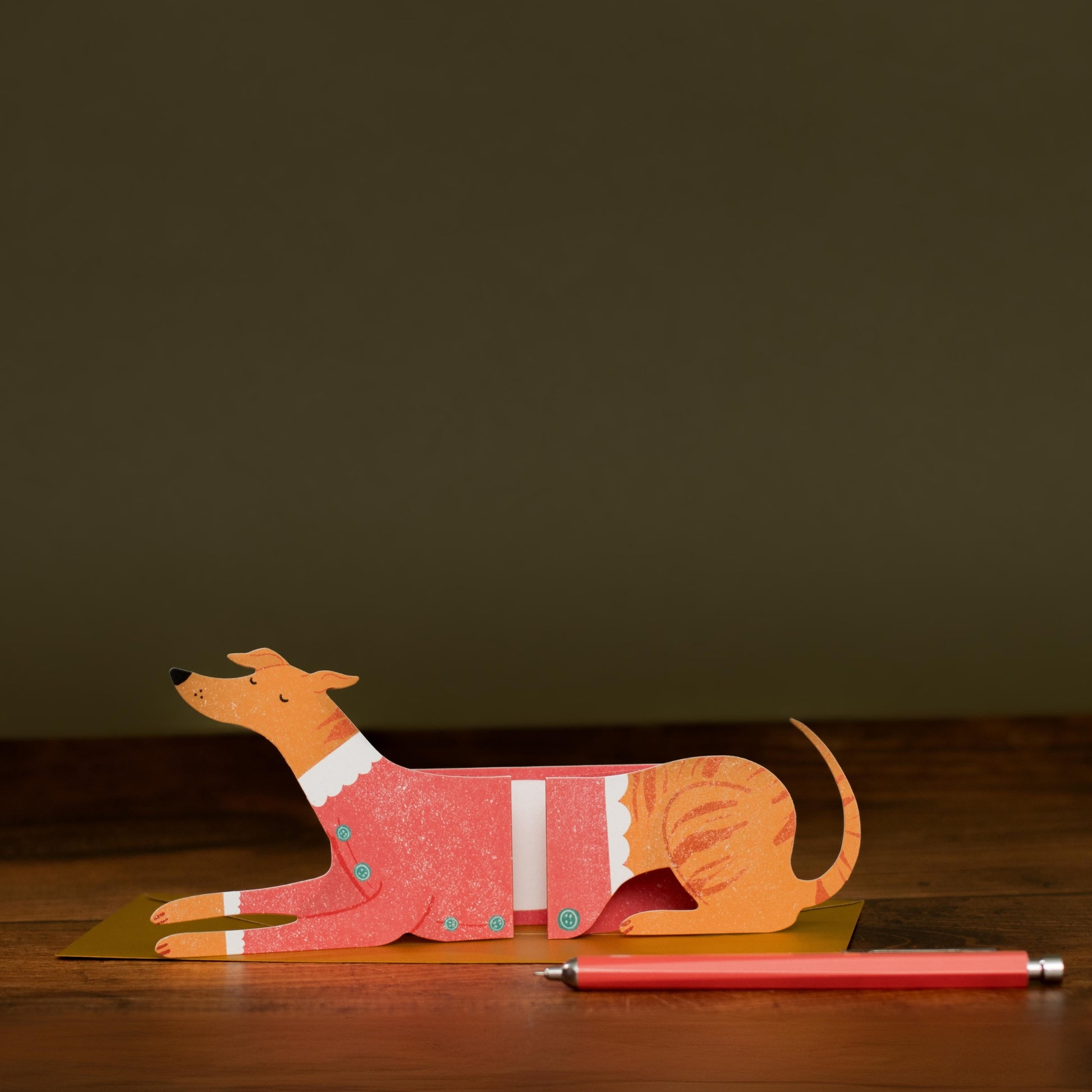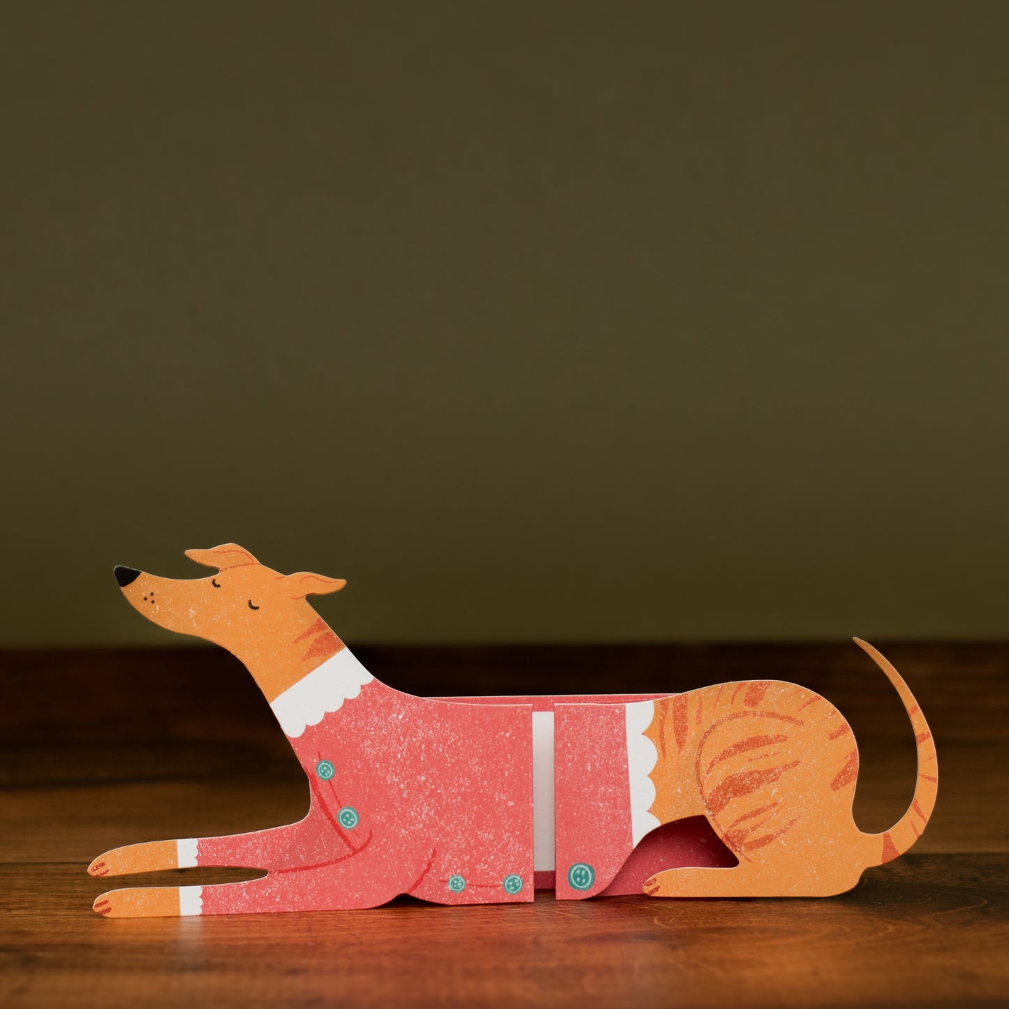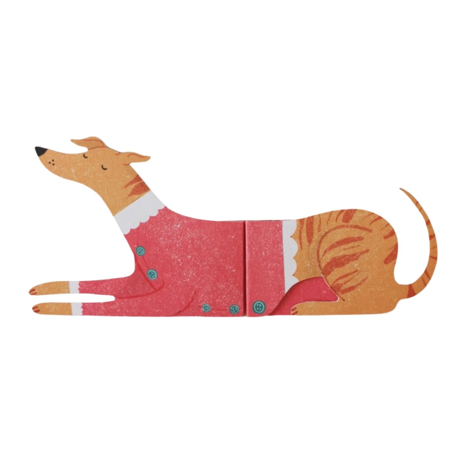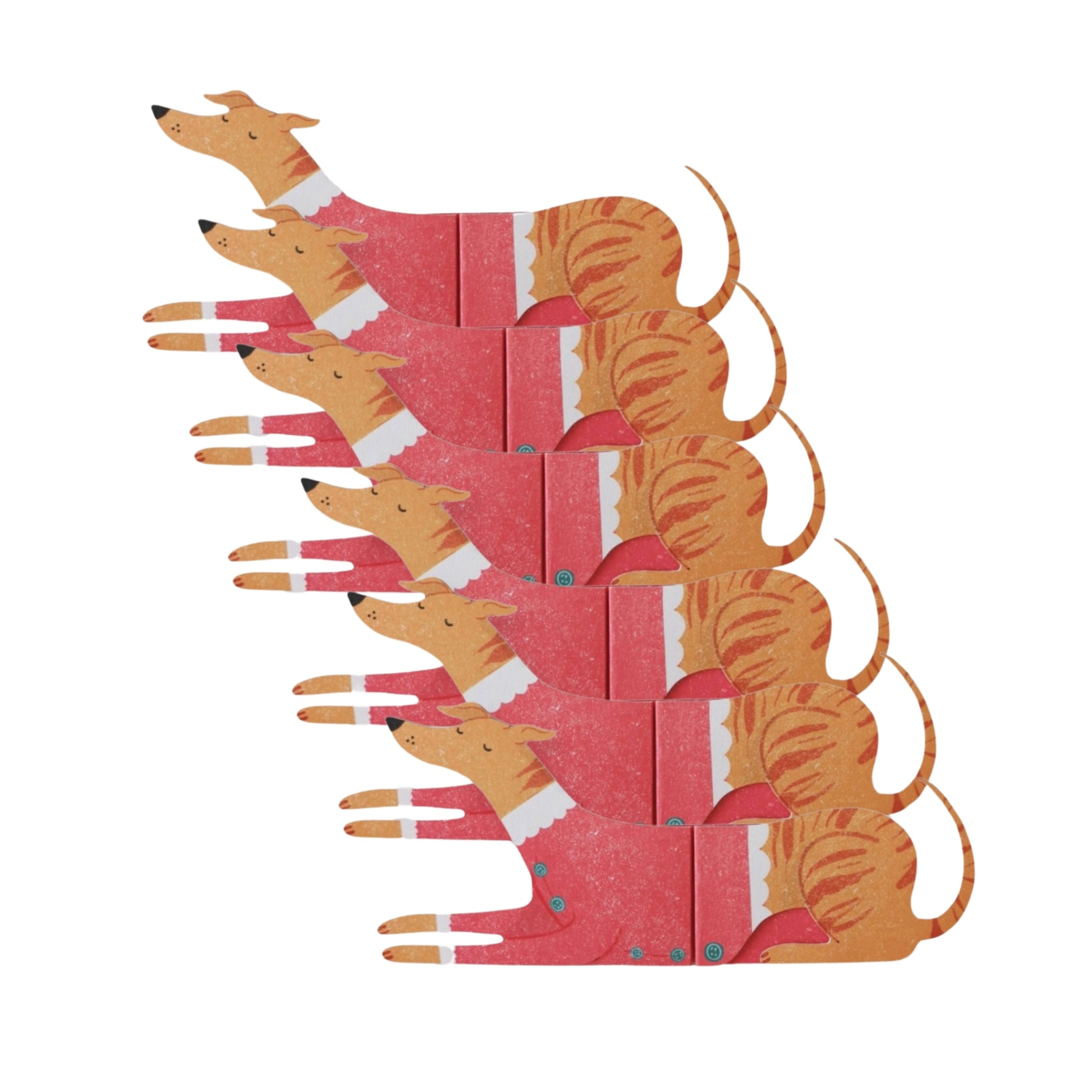 Set of six cut out dog Christmas greetings cards. Printed in the UK in small batches on beautiful slightly textured card to give a handcrafted luxury feel.