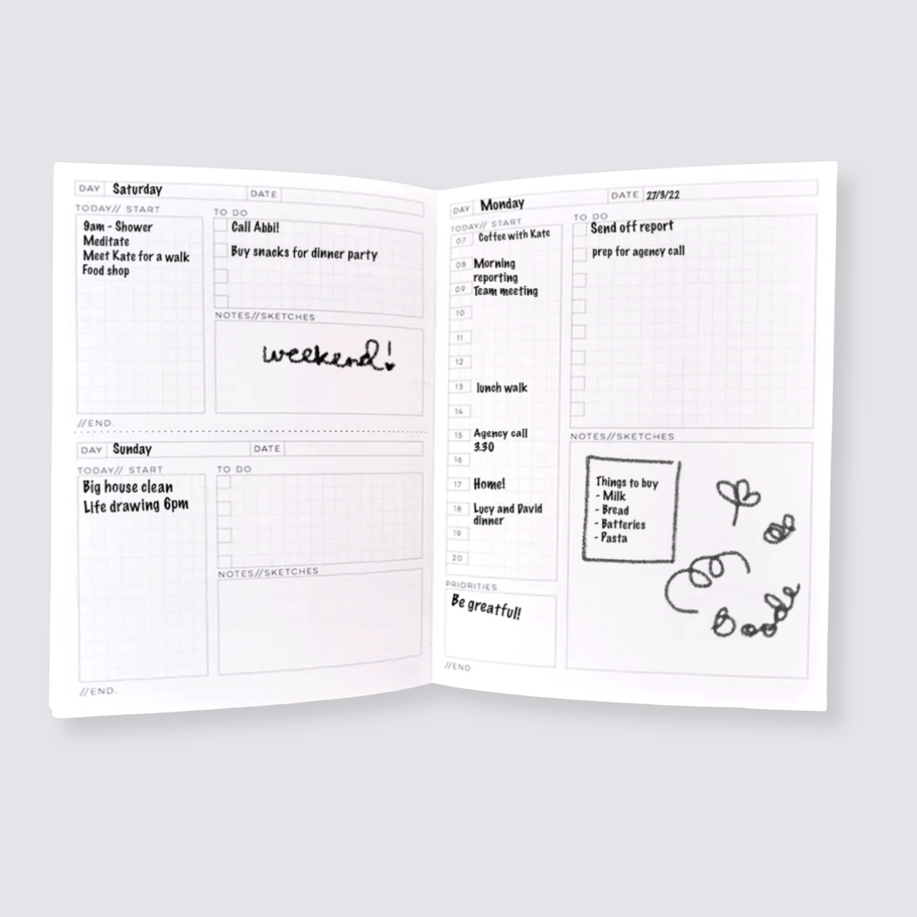 This daily undated planner is made by a family run music bookmaker right here in the U.K. The inside sheets are made from music sheet paper. The soft cover is a luxurious, textured 250gsm G.F. Smith card and has 320 pages, made from a lovely textured 90gsm Munken paper. It has a day per page for weekdays, and a page split in half for the weekend - there are 52 weeks in total and it comes with a matching bookmark.