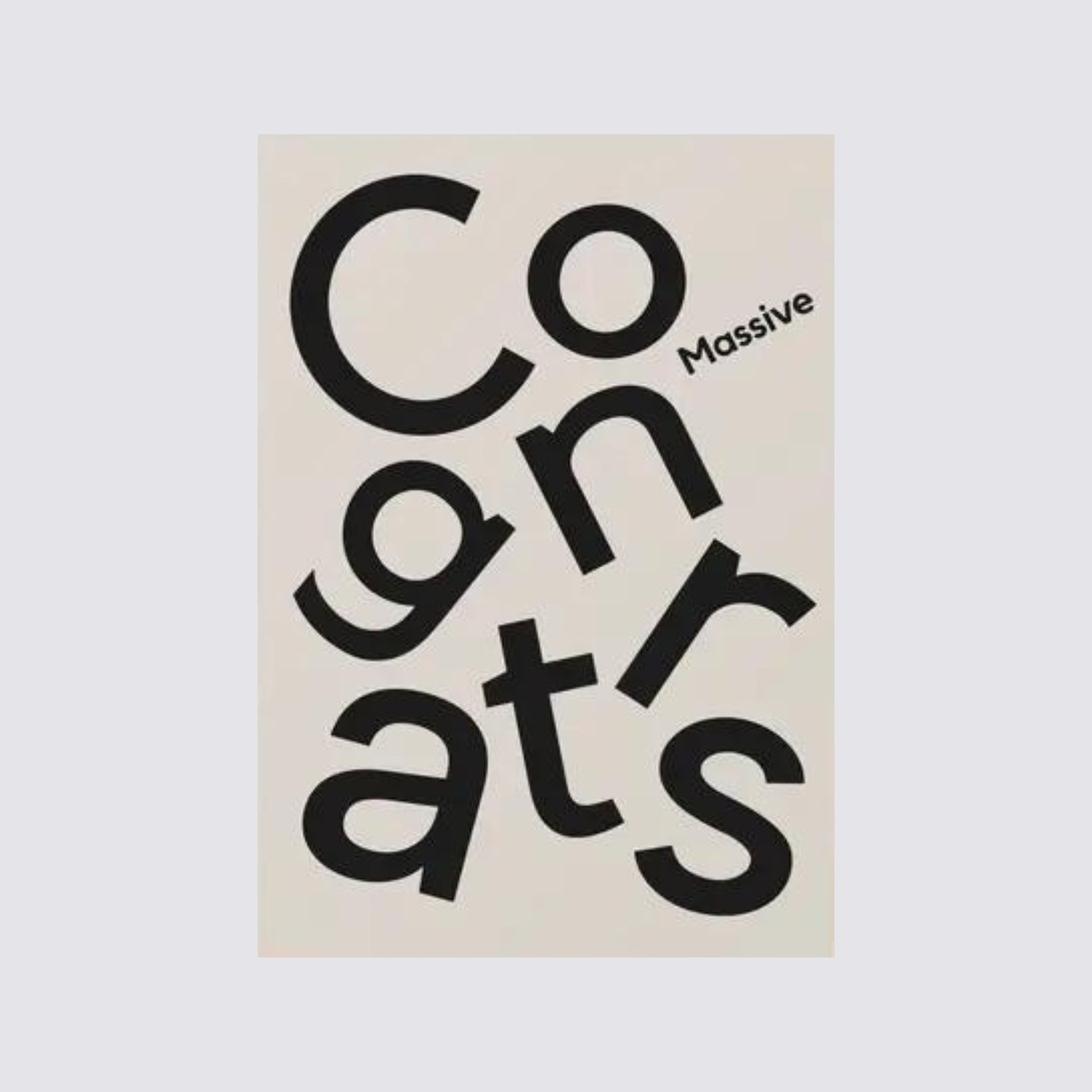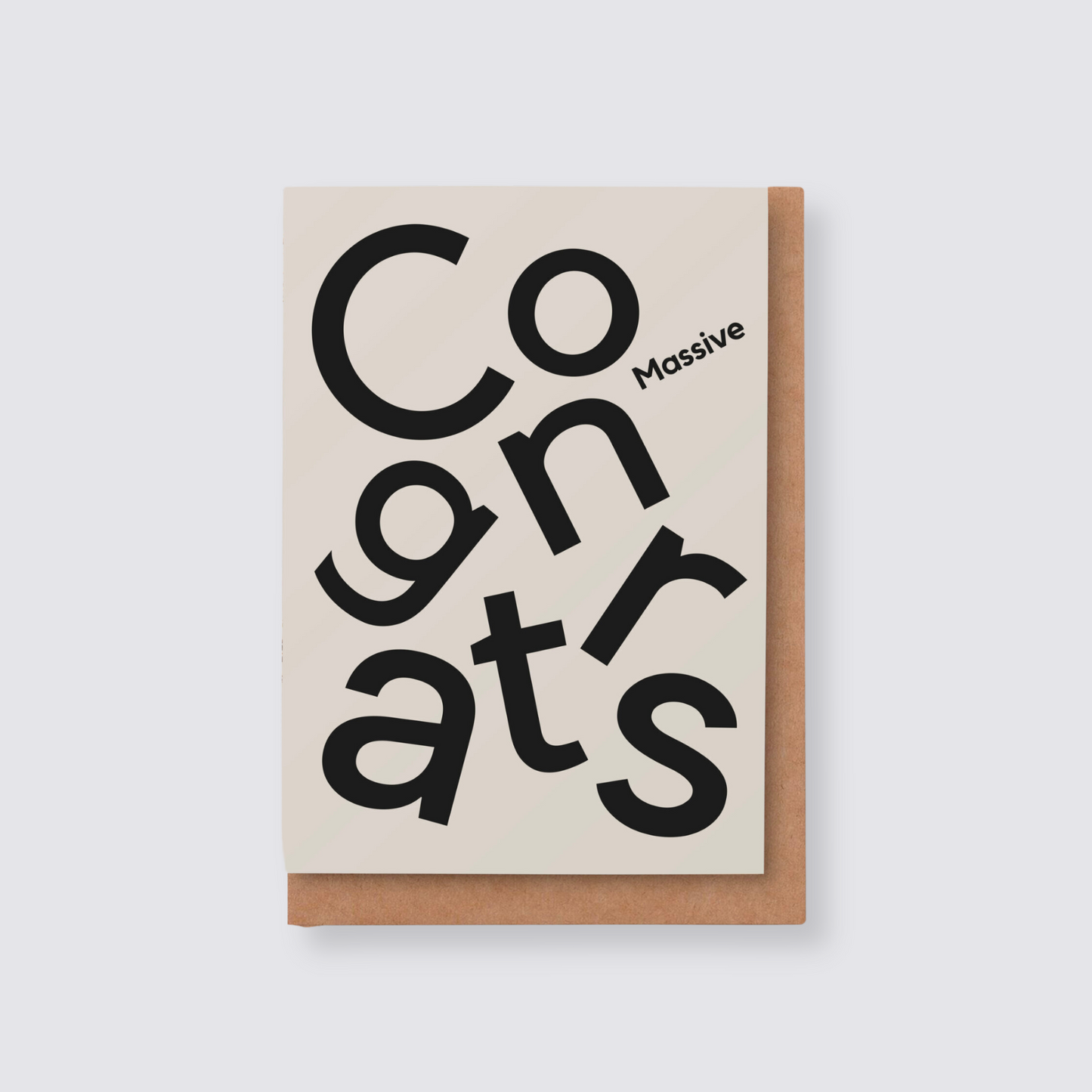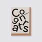 Massive Congrats from our Type range. A very slightly off-white card with black type collage. Printed on FSC textured stock and accompanied by a luxury GF Smith Kraft envelope.