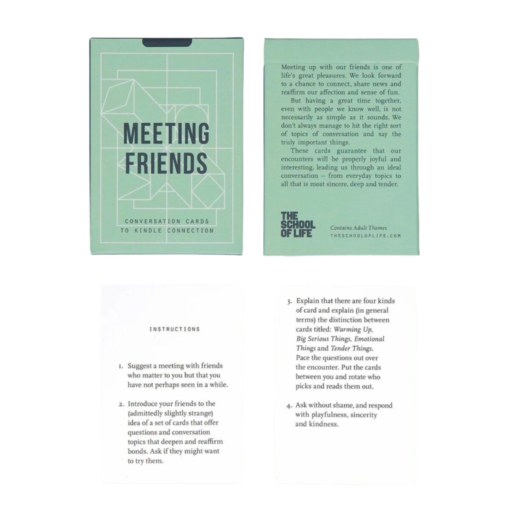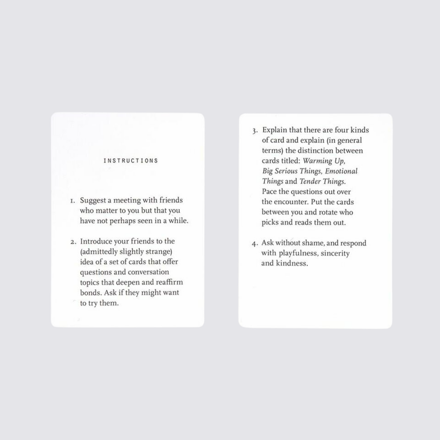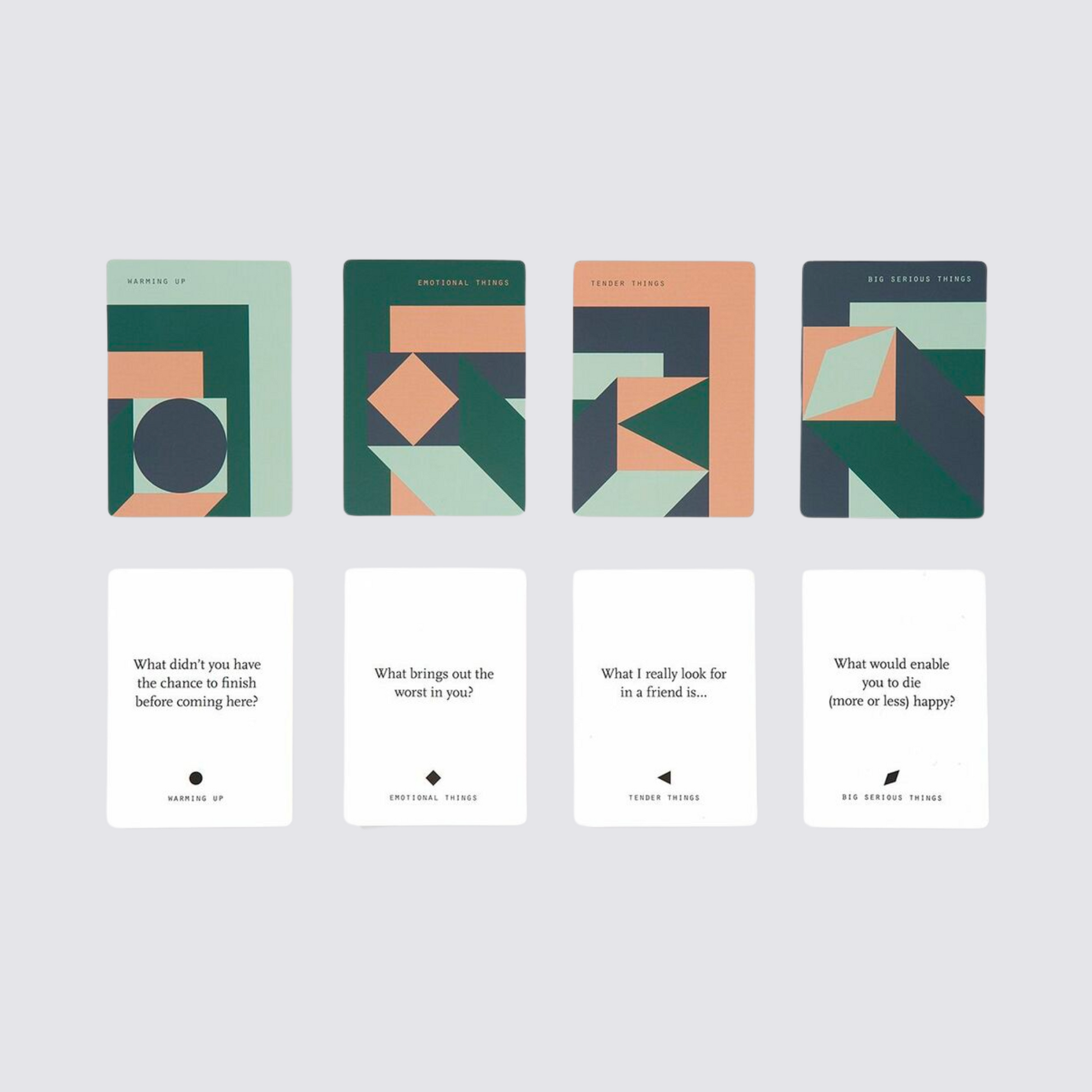 52 cards with questions and exercises for deeper and more meaningful conversations with friends.