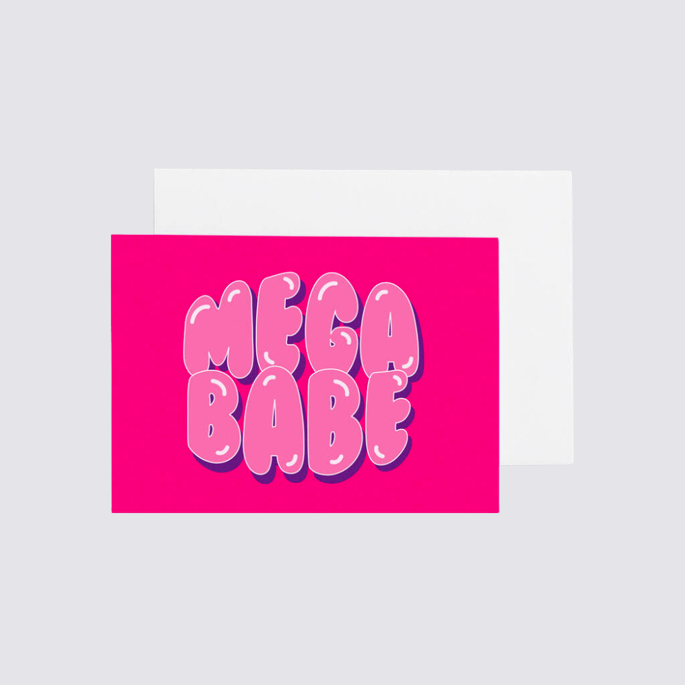 Hey there! We caught you looking at our Mega Babe - A6 greeting card. It’s printed on eco friendly 350gsm card and comes with a white envelope. This card is blank inside for your own personal message. Dimensions: 105mm x 148mm