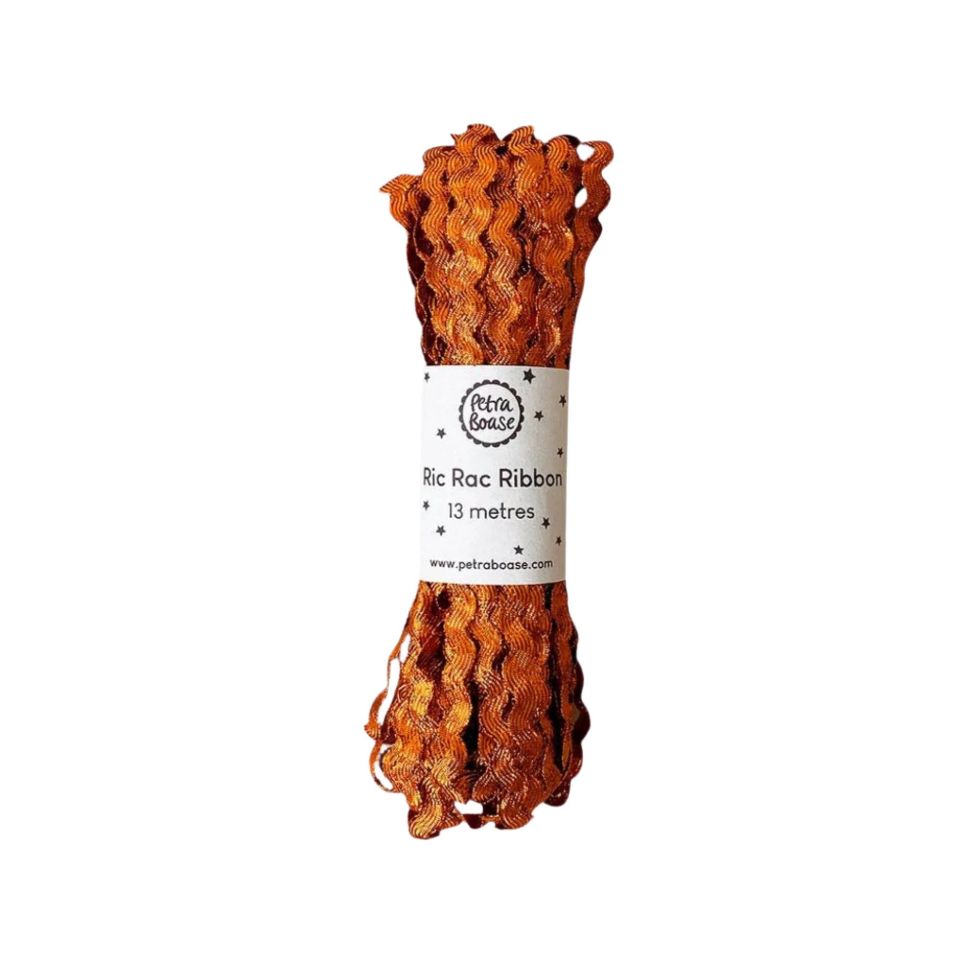 This sumptuous Topaz Orange jewel tone metallic ric-rac ribbons add glamour to gift wrapping.