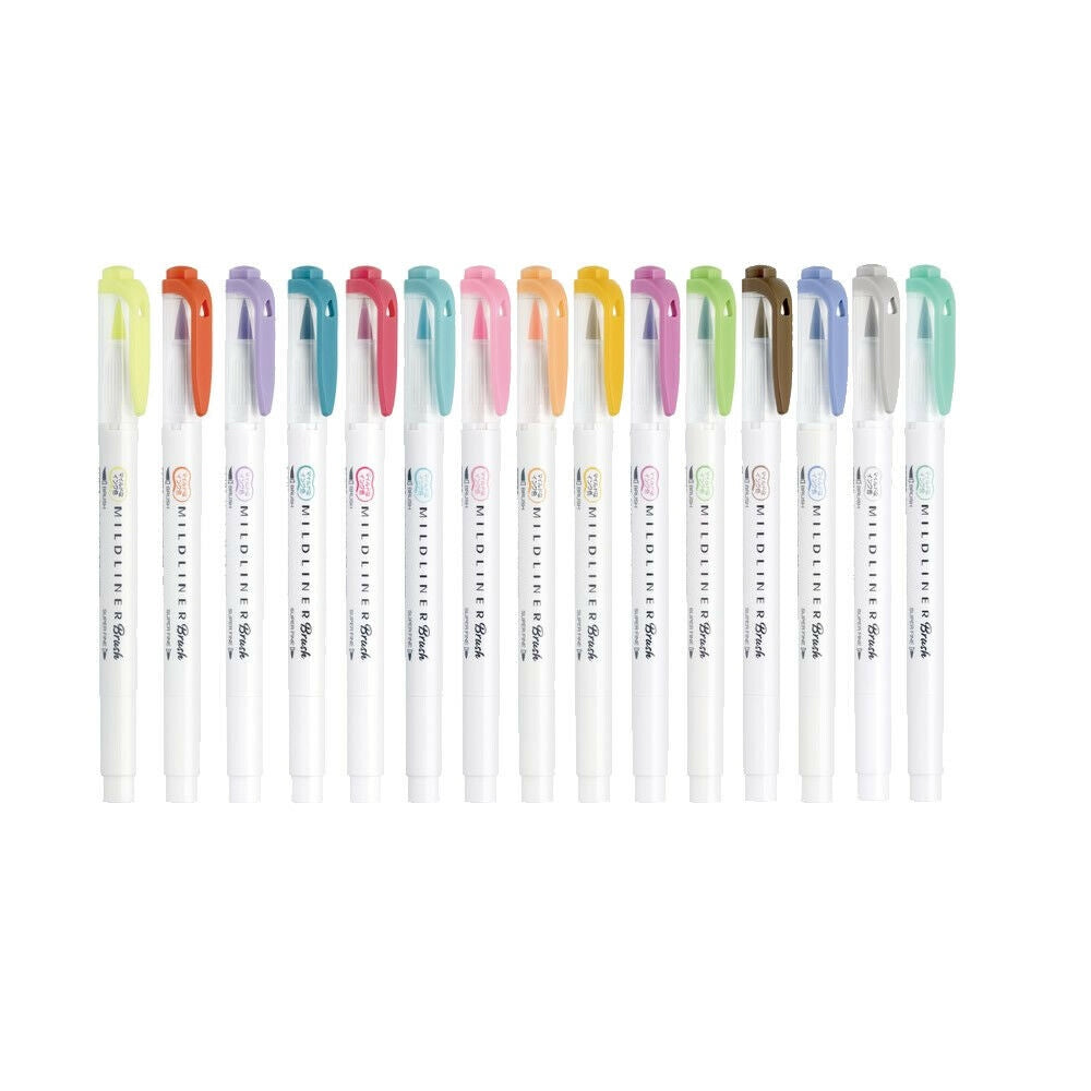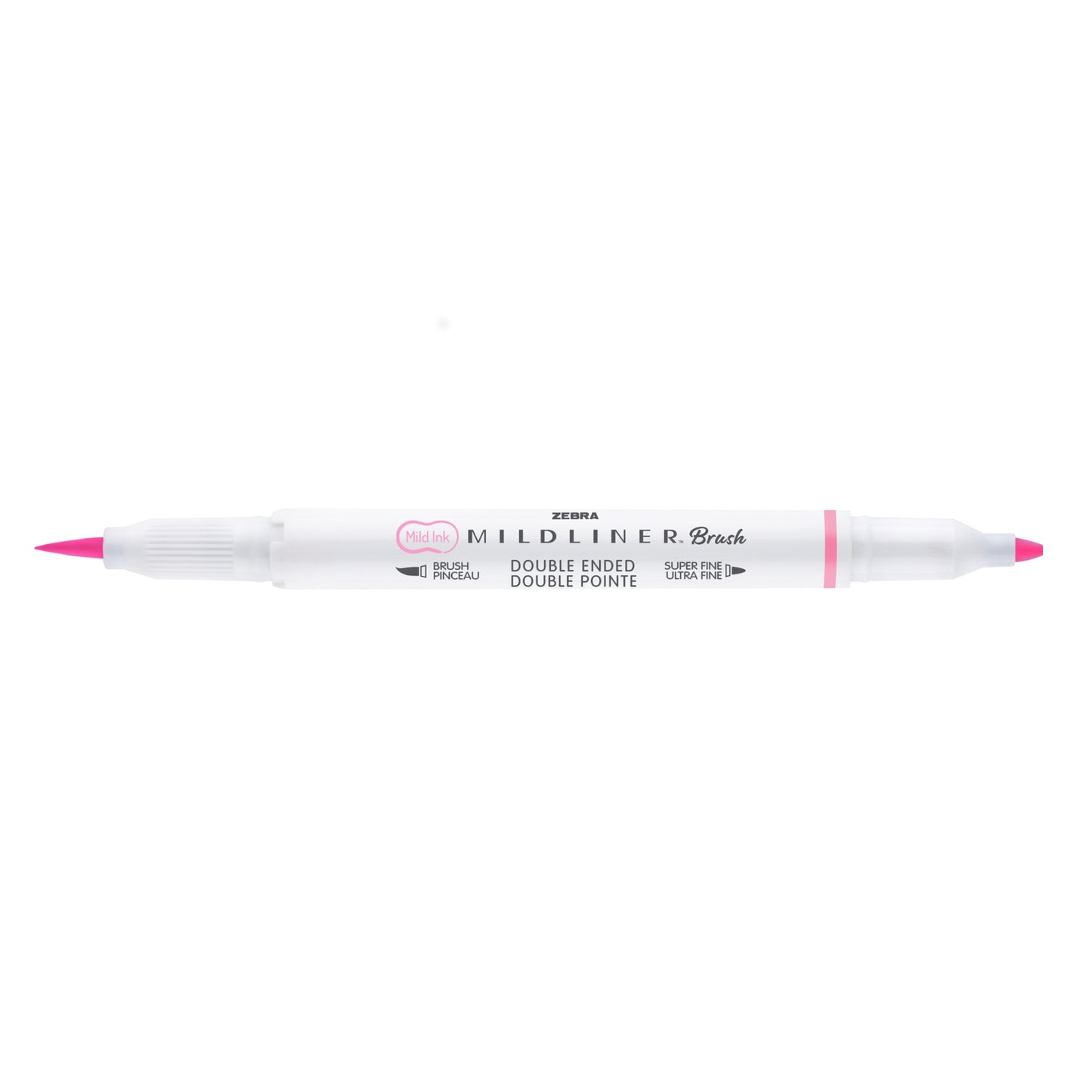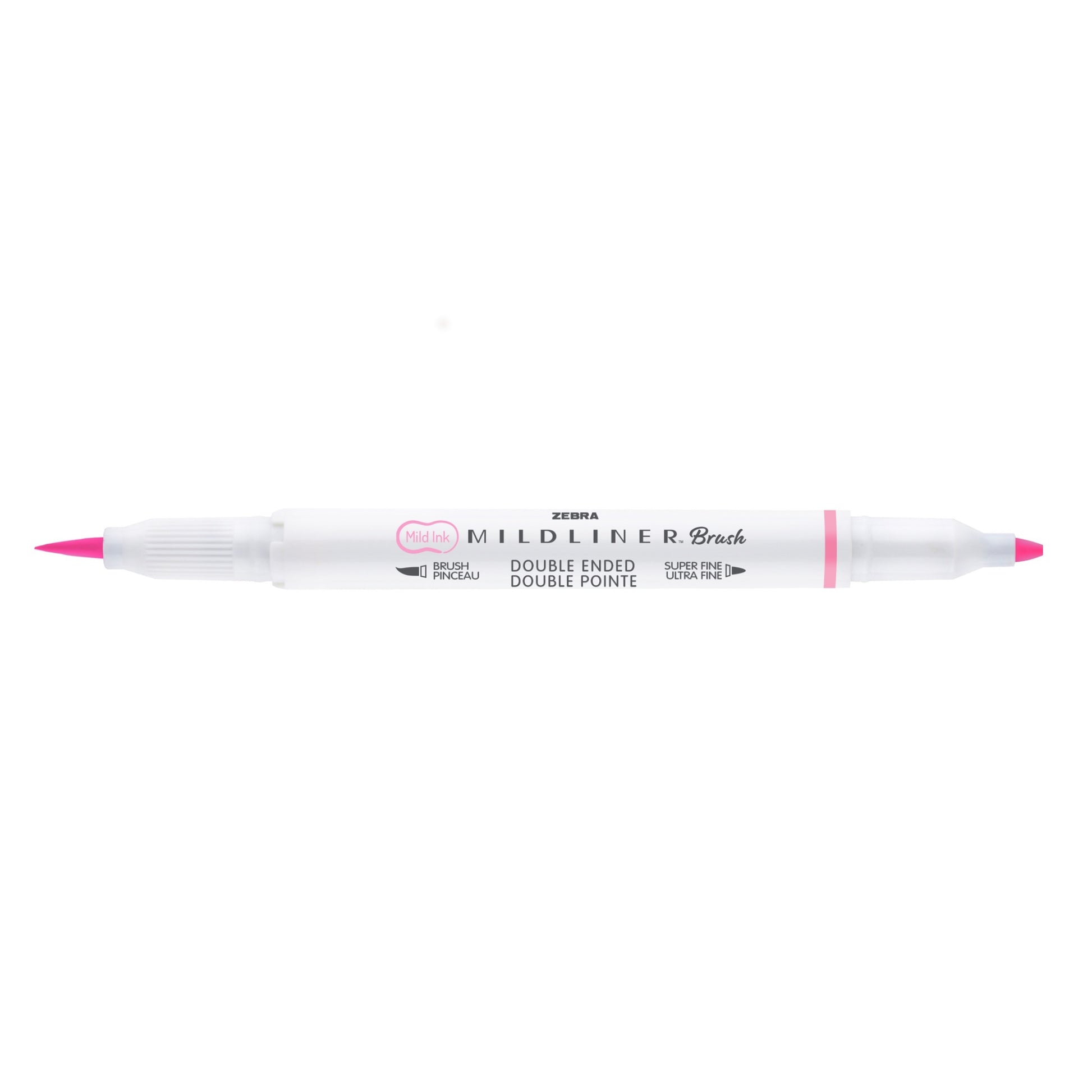 Introducing The Zebra Mildliner™ Brush Pen! This new product combines the colors and features of the Mildliner Creative Tool with the unlimited possibilities of a brush pen. The Zebra Mildliner Brush Pen is conveniently double-ended with a paint brush-like tip and fine marker. It features the soft, mild Mildliner ink that you love that is translucent, excellent for layering and doesn’t bleed through. The brush tip is like an artist’s brush, allowing for thick or thin strokes while the fine tip marker provides more consistent lines.