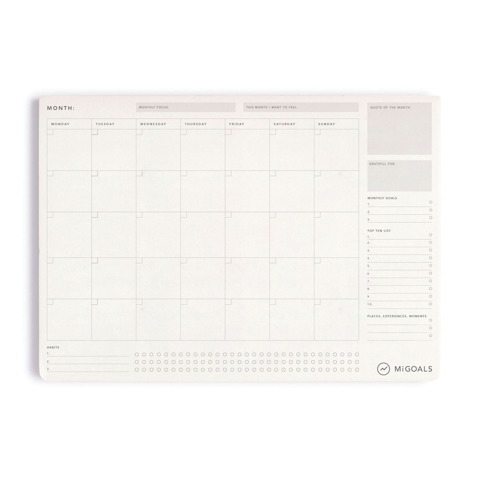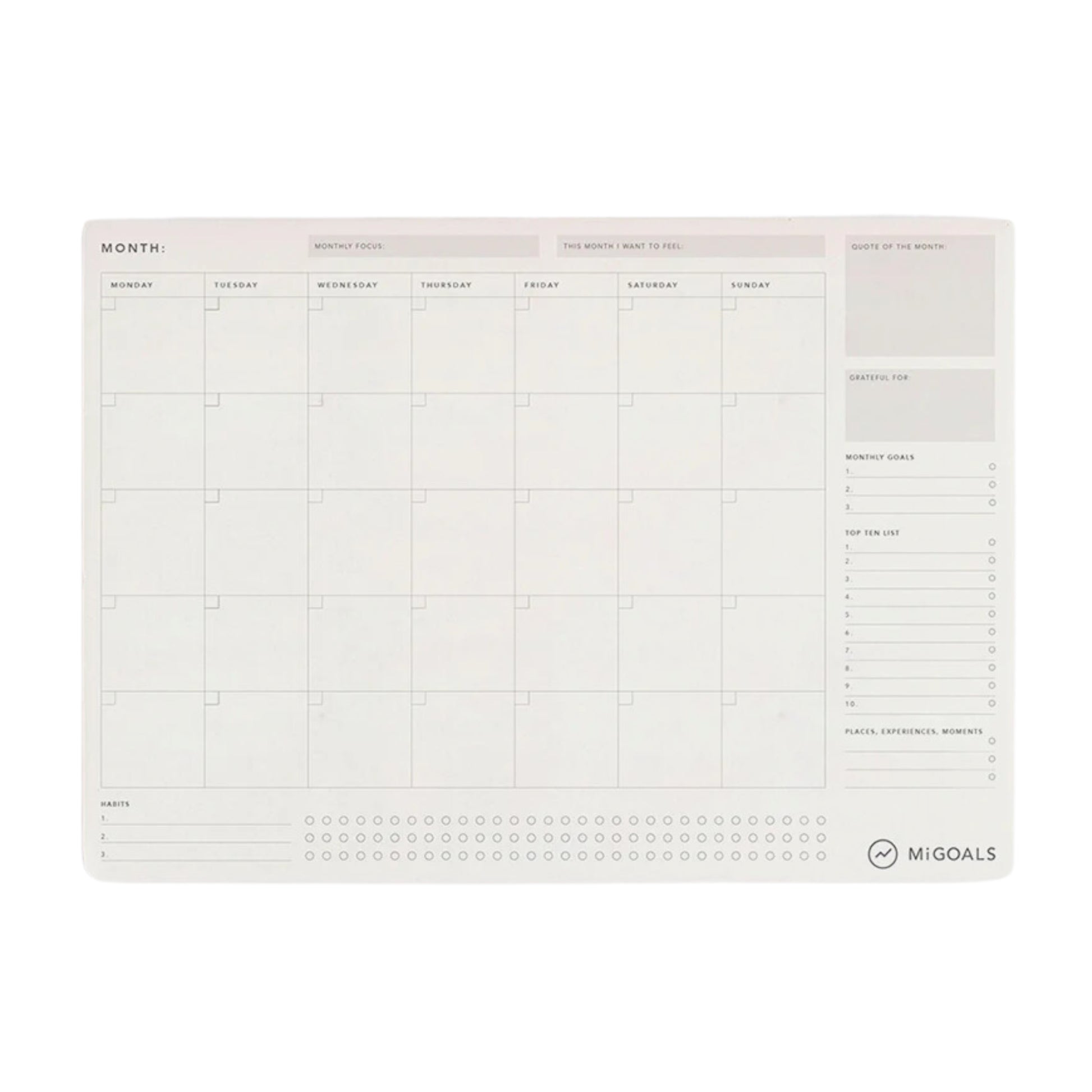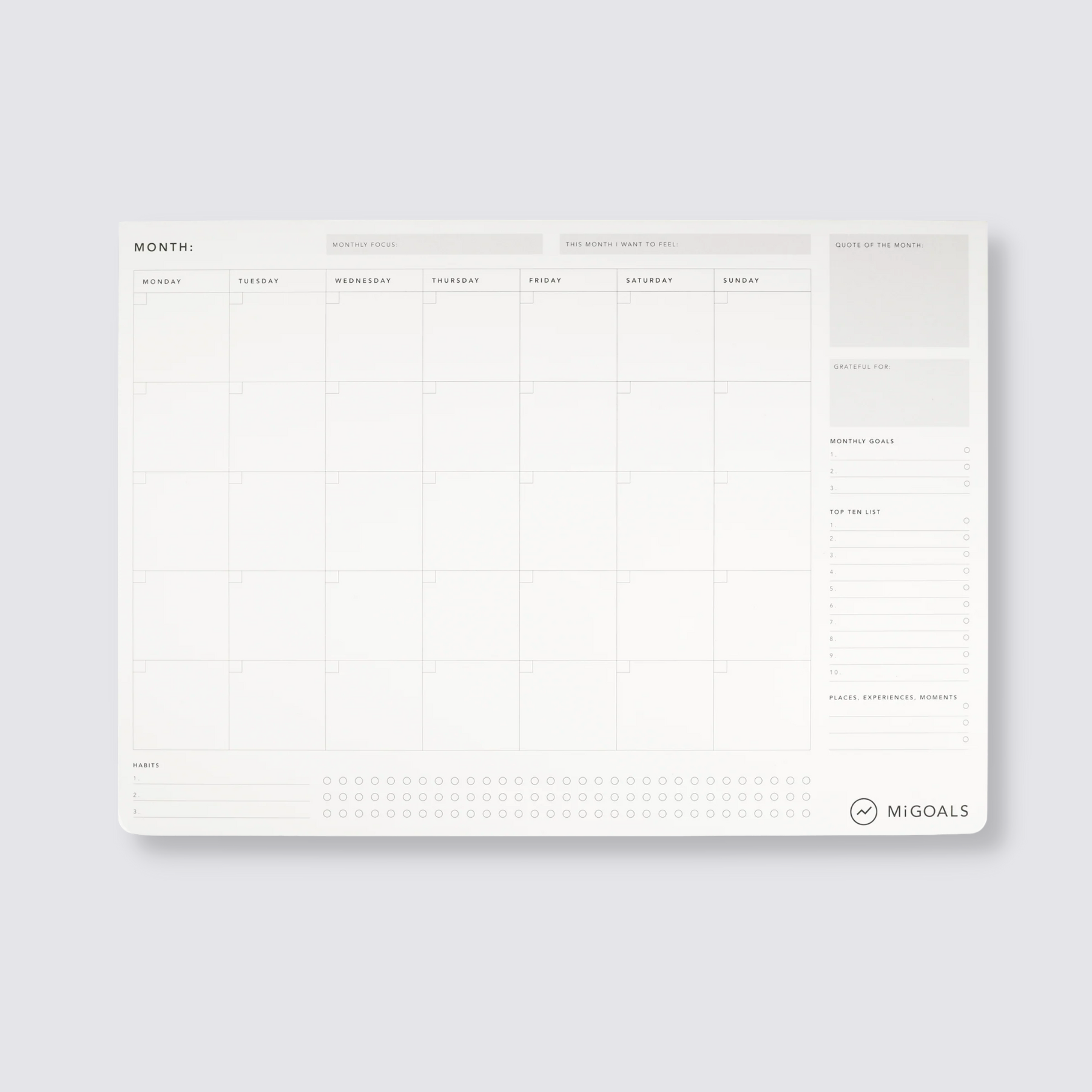 The monthly desk planner is your visual reminder of the key things you need to do to help you execute your goals whilst you work from home.