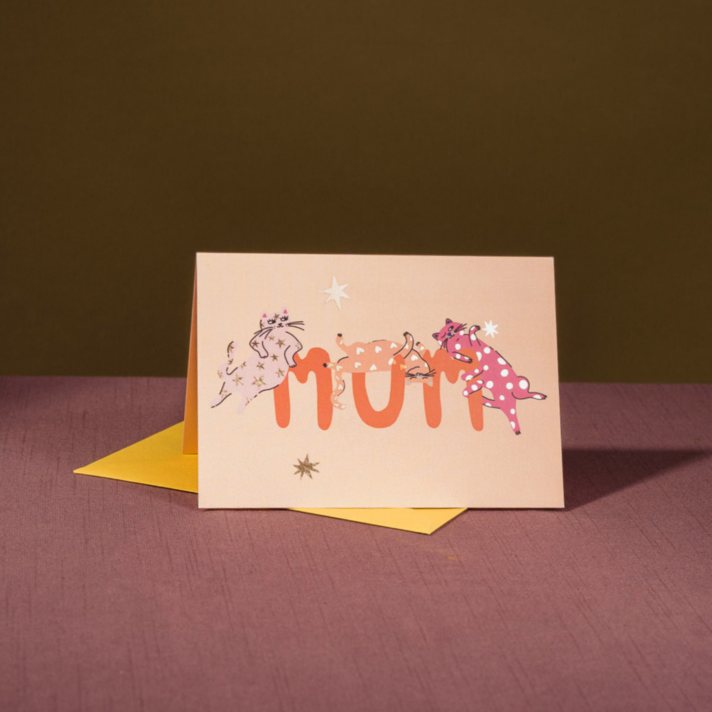 For the cat lover - Mother's day greeting card in gold foil Card size 6x4 inches Designed in London and printed in the UK The card is blank inside + comes with a high-quality plain brown Kraft envelope Extra special - cute illustration inside the card to match the front design We’re all about quality, so we print our designs on premium paper that looks and feels gorgeous Our cards are made from sustainably sourced FSC paper, printed in the UK, and sent plastic-free.