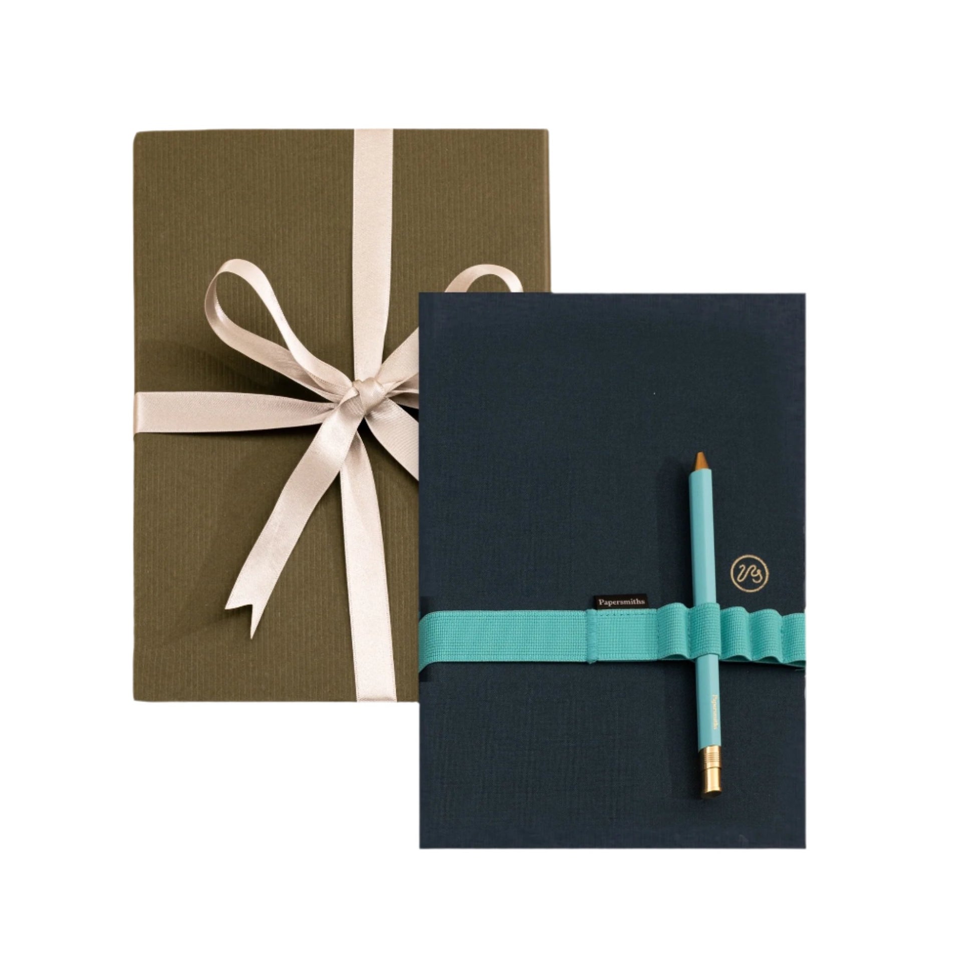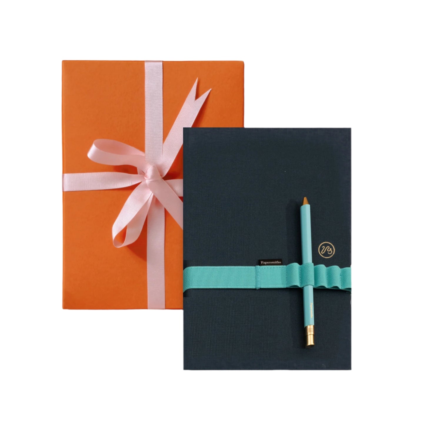 For the ultimate in paper decadence, The Trio will arrive gift ready in one of our gift boxes. Your items will arrive nestled amongst an embossed 350gsm Papersmiths gift box, neatly secured with a ribbon. The box can be repurposed for storing keepsakes and documents. It will be cherished for years to come. If you would like us to include a handwritten note for your lucky recipient, please pop the message in the box at checkout."