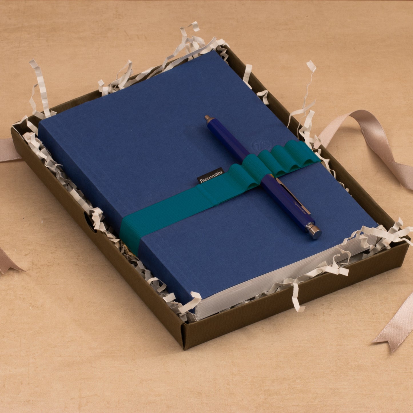 For the ultimate in paper decadence, The Trio will arrive gift ready in one of our gift boxes. Your items will arrive nestled amongst an embossed 350gsm Papersmiths gift box, neatly secured with a ribbon. The box can be repurposed for storing keepsakes and documents. It will be cherished for years to come. If you would like us to include a handwritten note for your lucky recipient, please pop the message in the box at checkout."