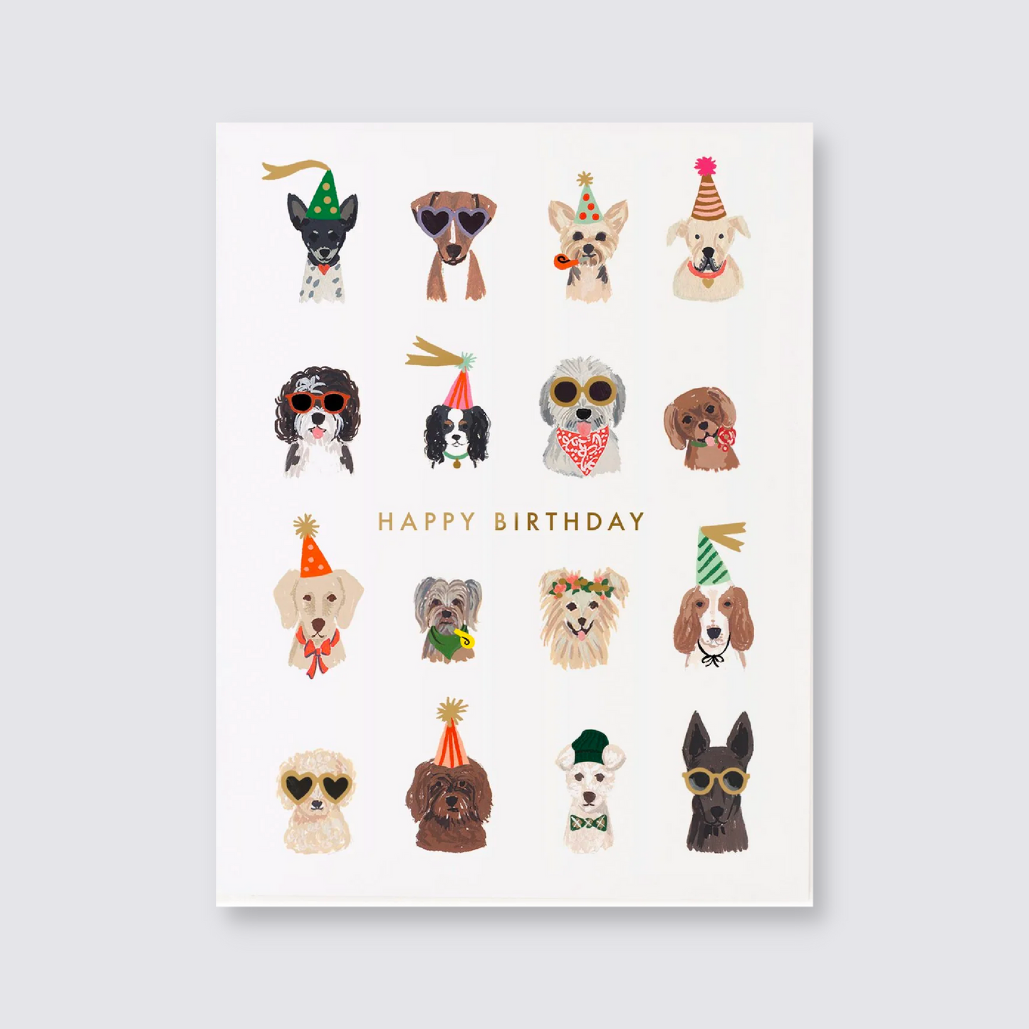 Greetings card printed on natural white cover paper with gold foil lettering.