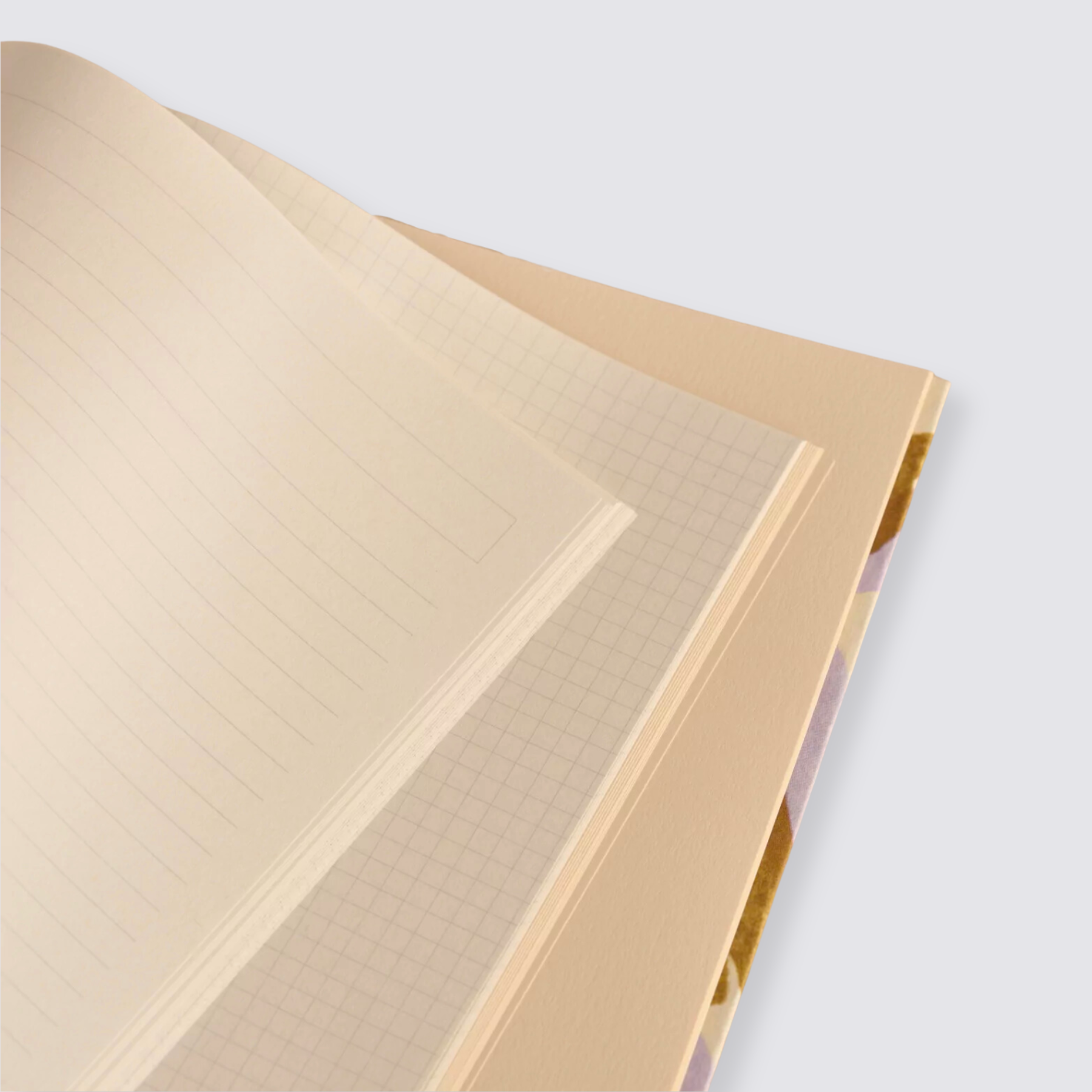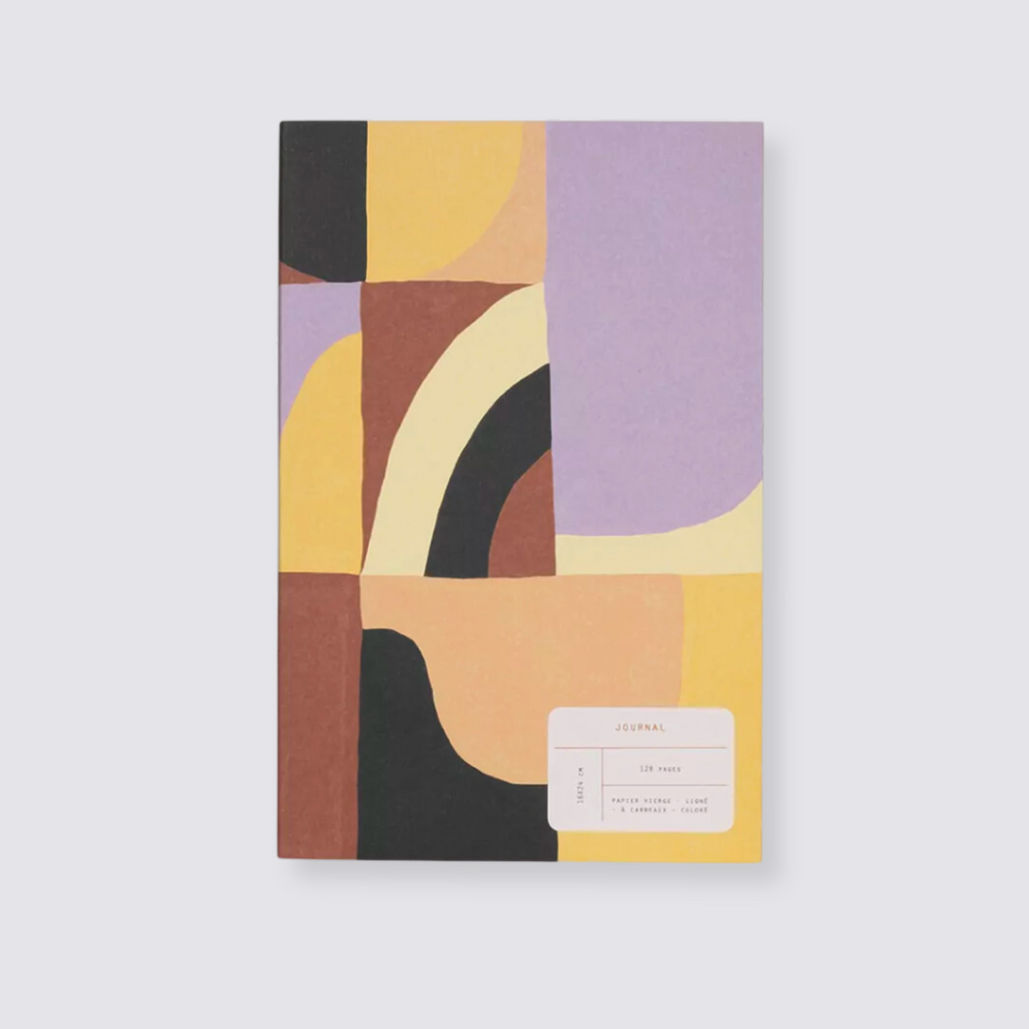The subtly coloured patchwork, drawn with felt-tip pens, of our Patience pattern, and its gentle geometric shapes in Lilas version, will accompany you day after day. Arranged on your desk or slipped into your bag, our journal will quickly become your most faithful companion! With its 64 lines, its 32 checkered pages and its 32 colourful pages, all your writing will be well guarded and especially well organized.