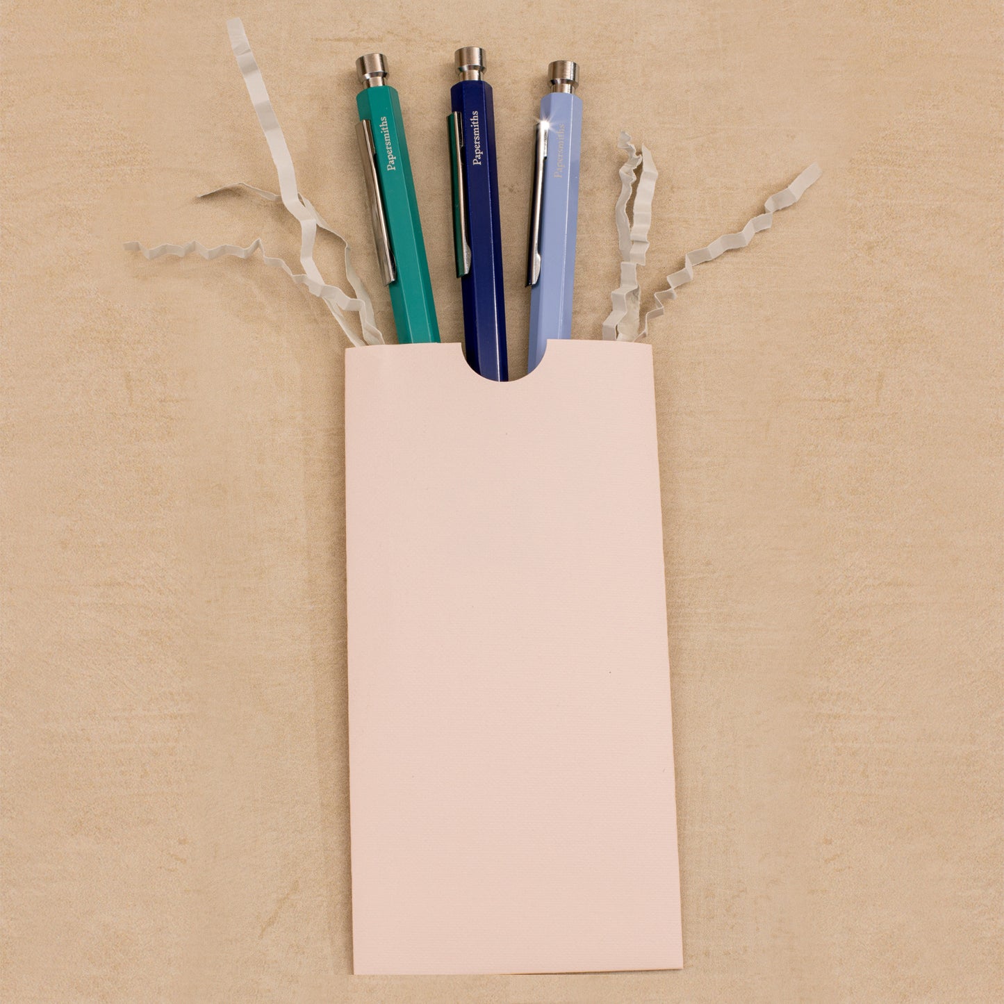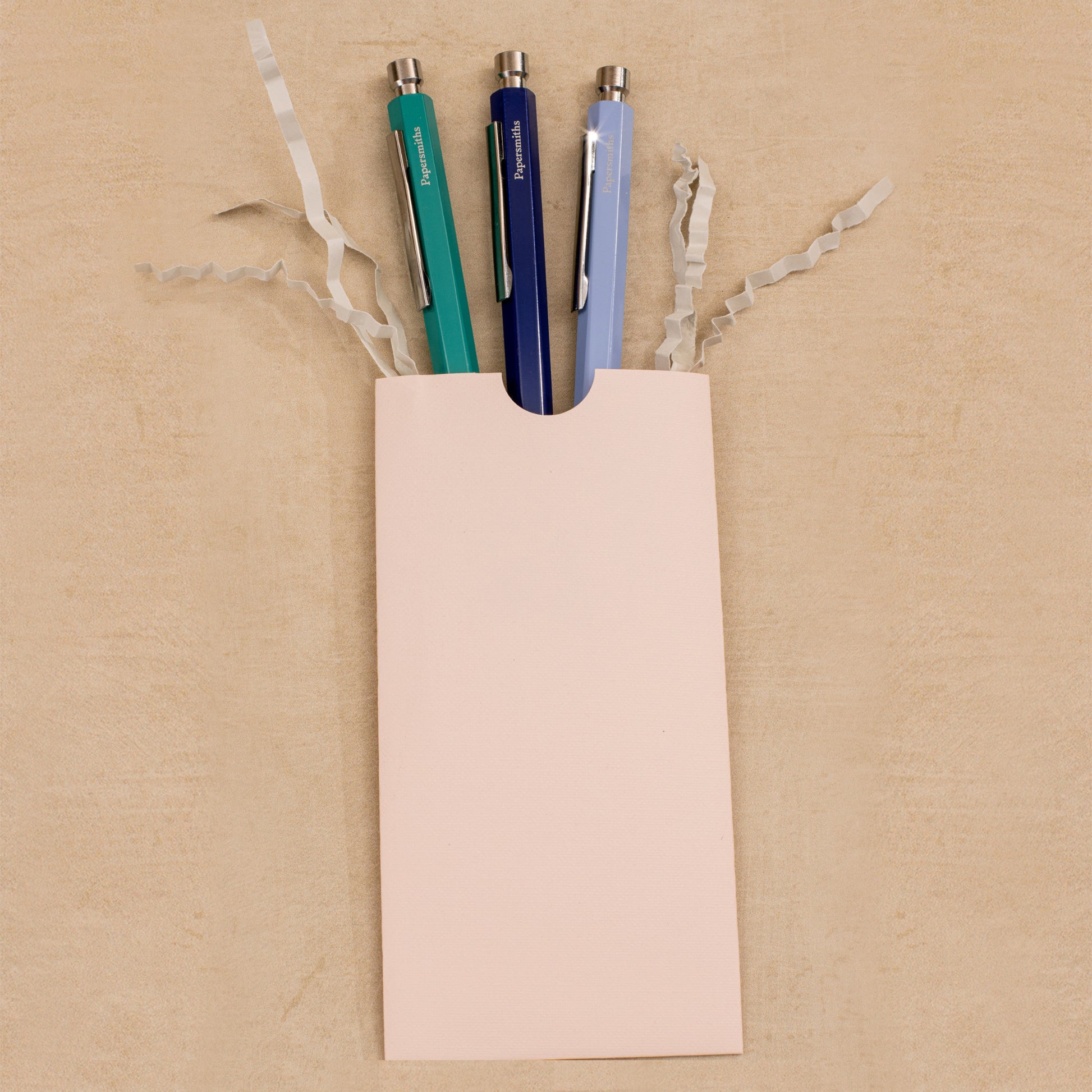 The set will arrive gift ready inside a 135gsm gift envelope, secured with our embossed sticker. The envelope is British made with Lake District papers, and embossed with a texture of tiny squiggles in a nod to the marks found on the pen testing pads in our shops. If you want us to include a handwritten note for your lucky recipient, please pop the message in the box at checkout.