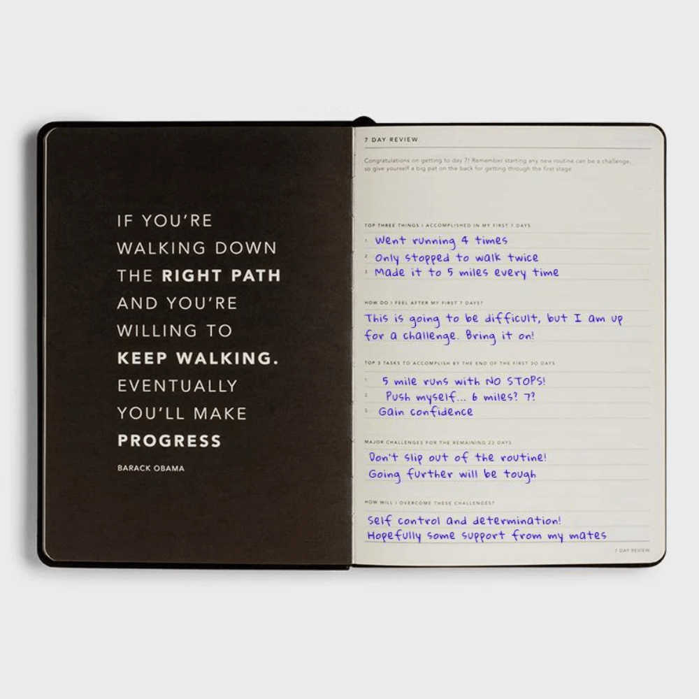 Track your progress with dedicated sections for setting goals and breaking them down into achievable steps, helping you stay on the path to success.