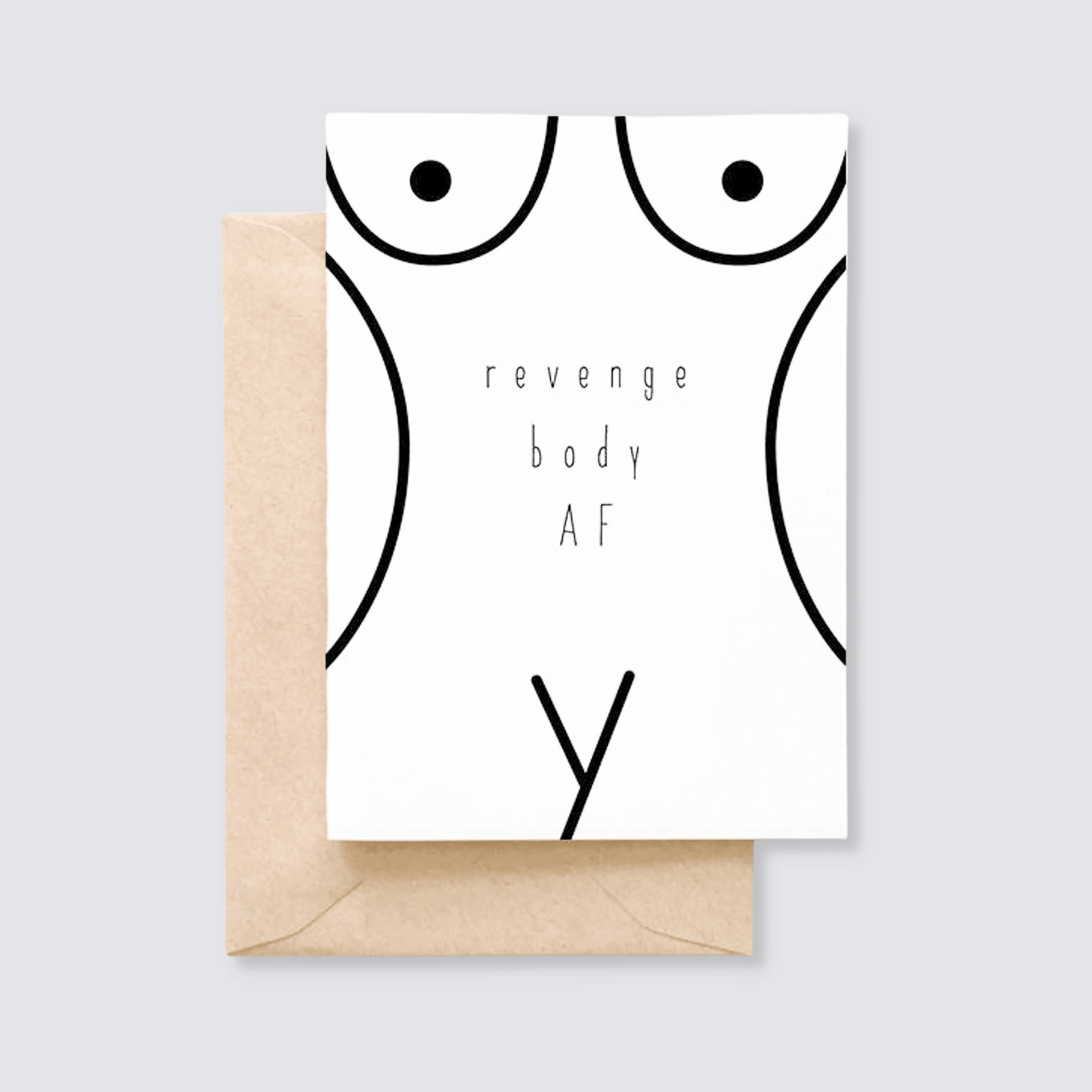 Designed by Spaghetti & Meatballs on white textured 100 lb paper and includes a kraft brown envelope.