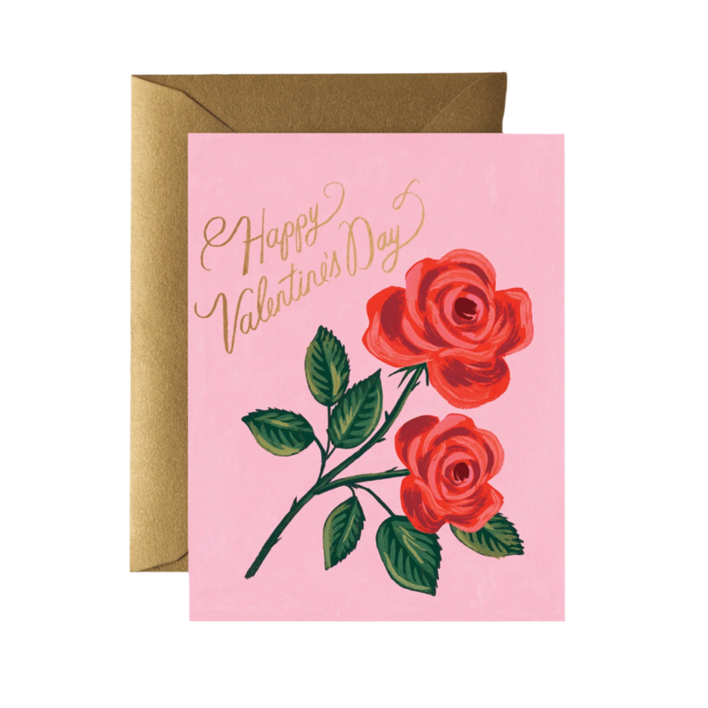 Greetings card printed on natural white cover paper with gold foil lettering.